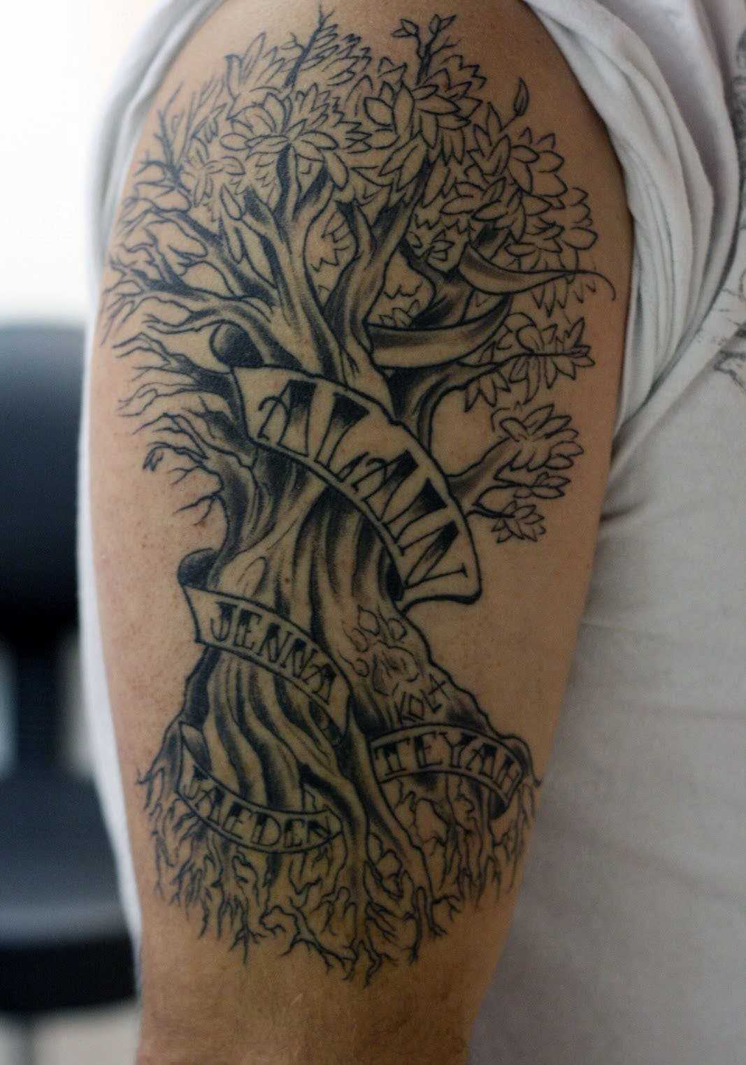 Стоит отметить, что дерево – это универсальный предмет, который одинаково часто используют и девушки, и мужчины. Сильный пол предпочитает изображать на своем теле дуб или бук, добавляющий мужчине силы, уверенности в себе и могущественности. Татуировка с изображением дерева на руке будет свидетельствовать о спокойности, рассудительности ее обладателя, подтвердит его ясность ума и четкие намерения, цели, на пути, к достижению которых он находится. Если же дерево пышное и имеет много ветвей, то это будет символизировать творческий потенциал и талант мужчины.