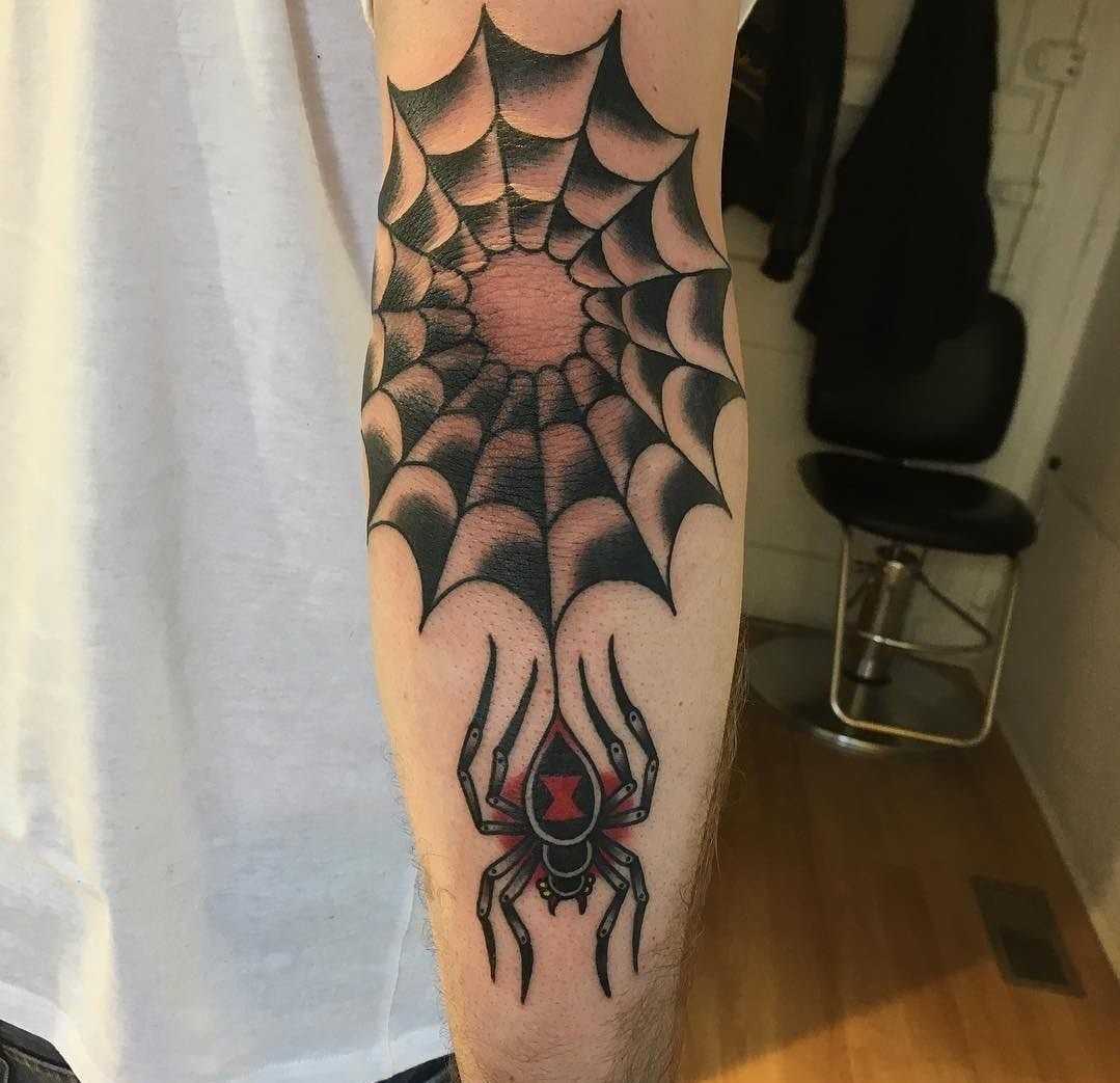 Татуировка с изображением паука имеет много значений, они зависят как от выбора эскиза, так и от участка тела, где находится насекомое. Так, если паук находится на руке, то он символизирует трудолюбие, аккуратность и изящество своего владельца. Также паука часто располагают на кисти, в этом случае есть несколько значений, зависящих от эскиза: