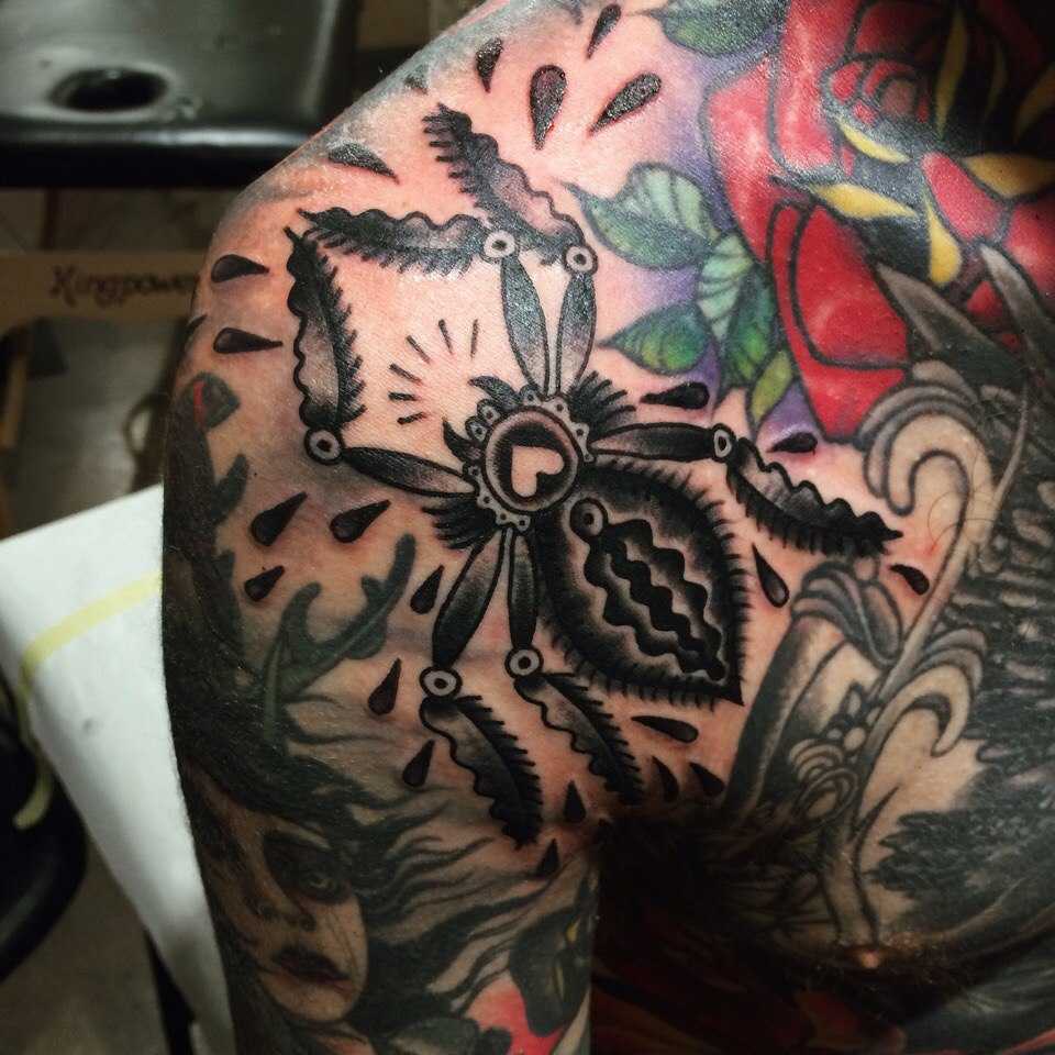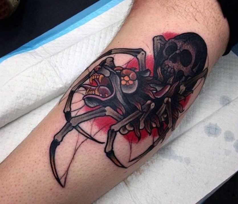 Паук на пальцах – оберег и защита от негативных мыслей, порчи и сглаза, при этом тату придает уверенности и силы своему владельцу. Тату паук на ноге – символ сильных, независимых и целеустремленных людей, способных быть лидерами по жизни. Паук на шее – мудрость и рассудительность, уверенность в себе. Паук на плече – агрессивность, защита, сила духа и характера.