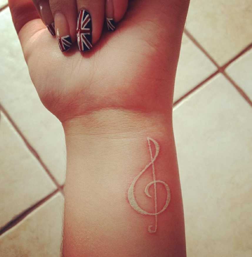 Небольшой скрипичный ключ на запястье девушки