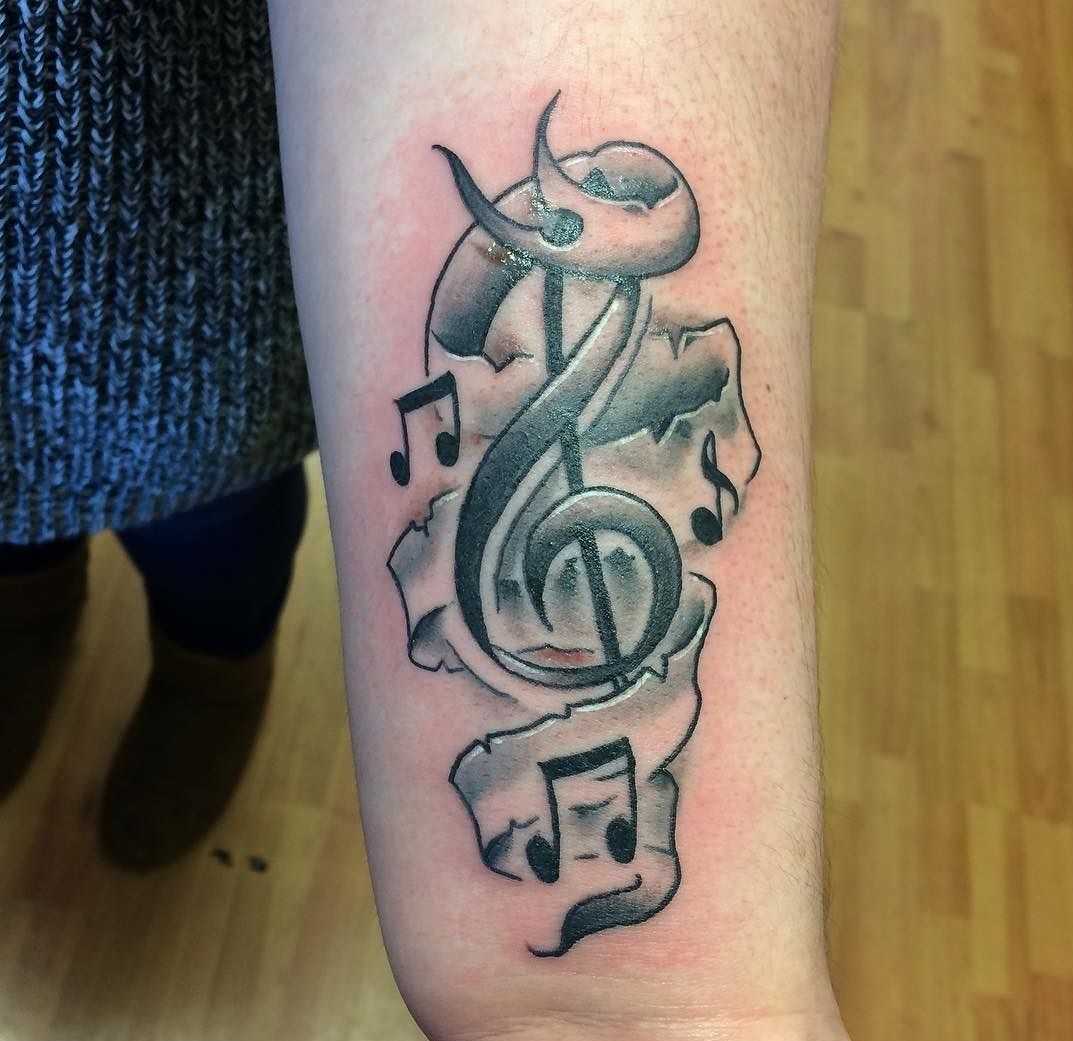 Но в любом случае если человек делает тату с нотами, это напрямую свидетельствует о его привязанности или большой любви к музыке. Это намекает на неординарную творческую натуру носителя рисунка, указывает превосходный талант и неповторимость.