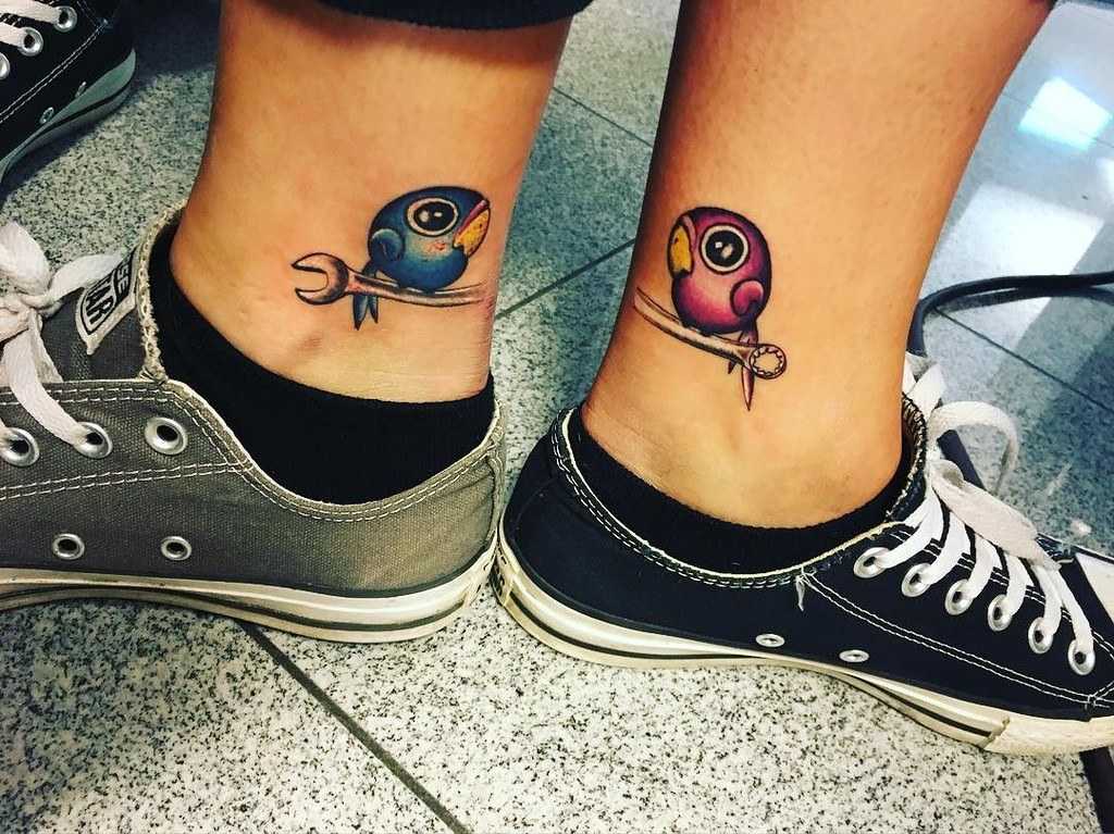 Чтобы доказать верность и преданность женской дружбы, многие решаются сделать одинаковые смысловые татуировки. Очень часто парные тату у подруг подразумевают дружбу, сотрудничество, общие интересы и пережитые события. В таких парных татуировках иногда разворачивается целая жизненная история. На сегодняшний день очень модно делать одинаковую татуировку нескольким людям, например, всем членам музыкальной группе. В таком случае выбирается музыкальный инструмент, которым владеет человек и в одинаковой стилистике с другими наносится на тело. Иногда настоящих друзей до конца жизни связывает одно хобби или увлечение. Катающиеся на лыжах, даже если это — не профессионально, делают татуировки в виде лыж, горных склонов с лыжней, канатные дороги и многие другие предметы, связанные с лыжным увлечением.