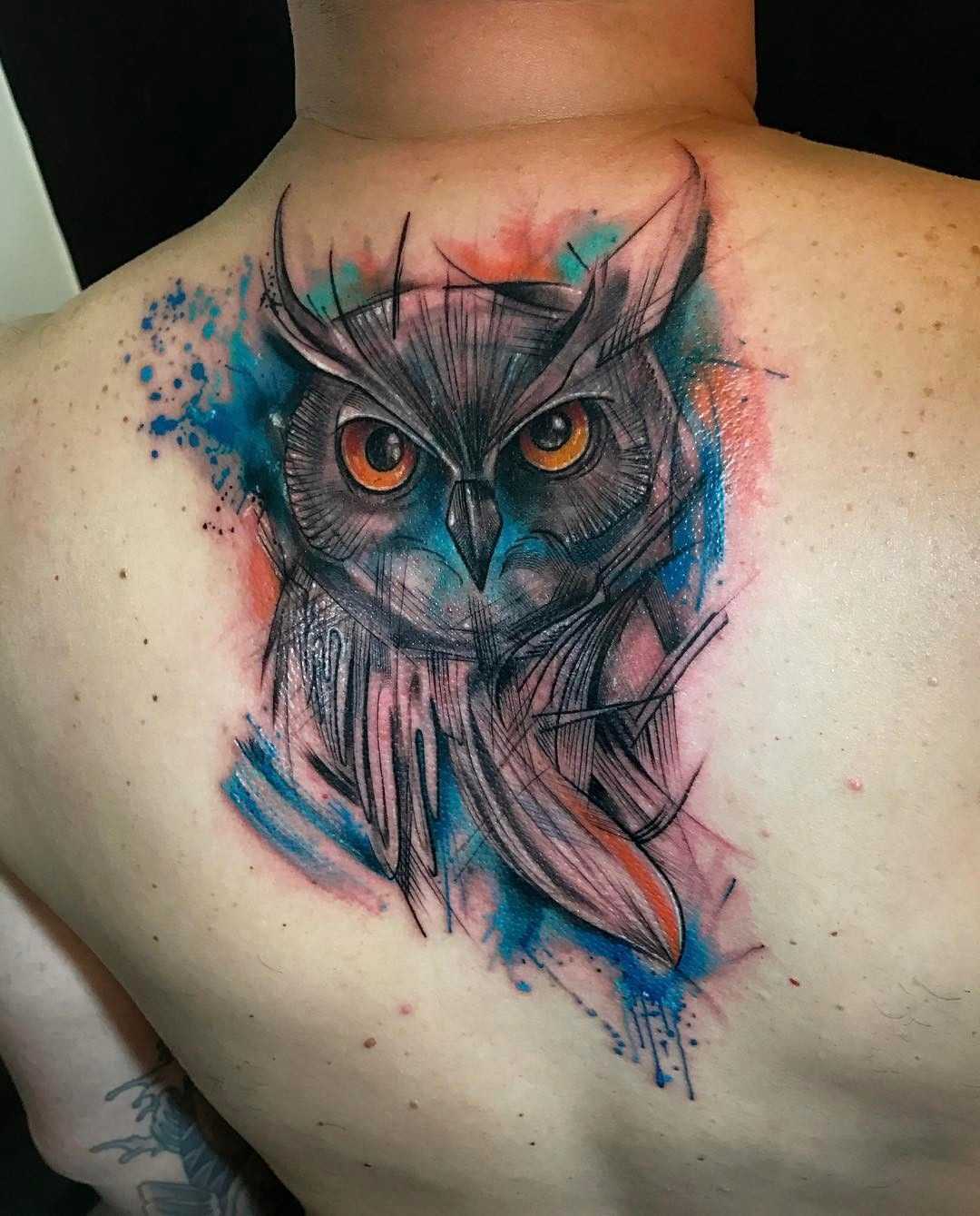 Нательное изображение в виде совы считается популярным в мире тату-искусства и встречается в разных стилевых решениях у мужчин и женщин. Чаще всего изображение совы встречается в виде эскизов, сделанных в ярких цветах. Это может быть одиночное изображение птицы или одна из составляющих общей композиции эскиза татуировки.