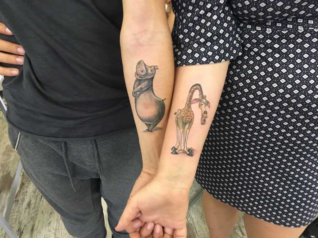 Татуировка сегодня – дело привычное. Многие люди склонны думать, что парное тату объединяет силу и энергию в одно целое. Нательными знаками украшают себя не только молодые пары, но и люди в возрасте. Рисунок на теле никак не связан с социальным положением пары, которая решила сделать наколки судьбы. Иногда люди задумываются и прорабатывают все моменты рисунка на коже. Но порой встречаются такие безрассудные личности, которые делают жуткие парные татуировки. Помните, что многие мастера тату и те, кому их делают, верят в то, что татуировка может повлиять на реальность и изменить судьбу. Предлагаем посмотреть самые оригинальные и необыкновенные парные тату на фото. А вдруг вы что-нибудь выберете?