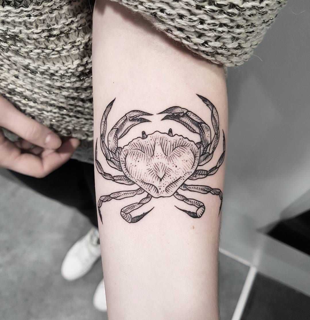 В целом татуировка этого знаком зодиака с одной стороны может означать смирение, неспособность противостоять обстоятельствам, замкнутость и чрезмерную осторожность. С другой стороны, Раки наделены воинственным характером и постоянно стремятся к самовыражению