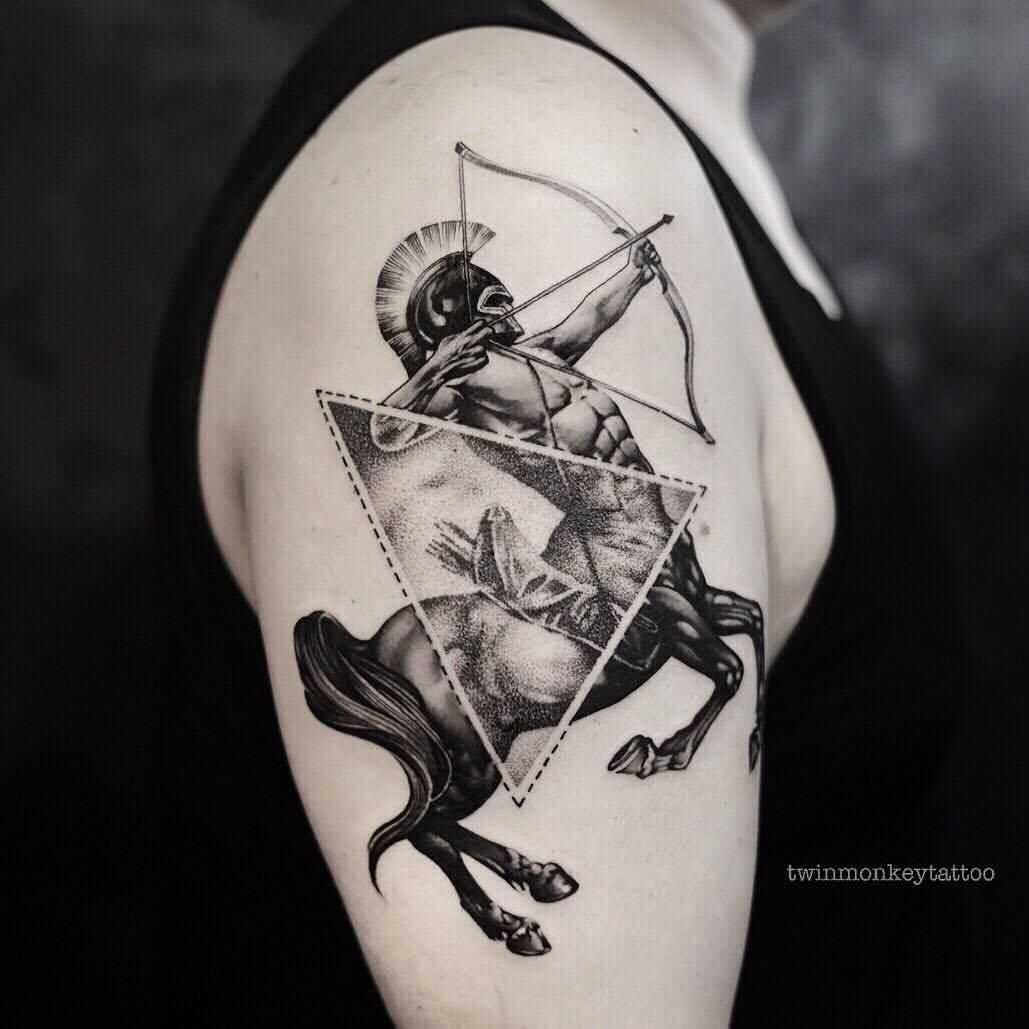 Значение татуировки с кентавром одинаково как для мужчин, так и для женщин. На мужчинах тату чаще всего выполняется в стиле реализм, с прорисовыванием самых мелких деталей. От этого татуировка получается объемной и крупной. На девушках удачно смотрится созвездие или символ Стрельцов. Обычно такое тату располагают на стопе, на руке, на ключице.
