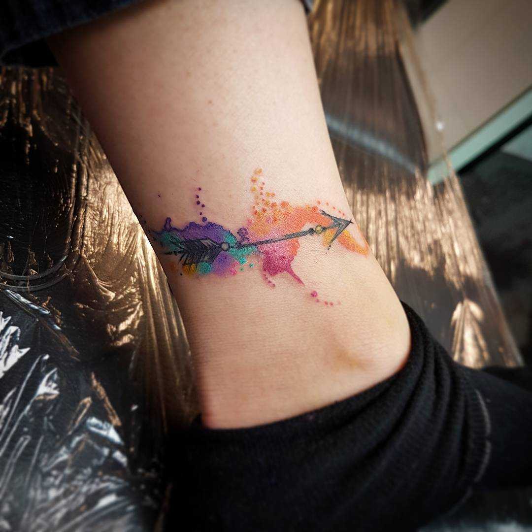 Девушки, отдавая дань модным веяниям, любят тату с цветами в геометрии. Красиво смотрится тату стрелец для девушек в акварели. От яркого нанесения картинка получает элегантный образ. Женщина не склонна к объему, ей нравится минималистичные эскизы. Девушка не придерживается классических канонов рисунка, поэтому нередко знак выбит в виде силуэта юноши или девицы со стрелами, что выражает внутреннюю самодостаточность.