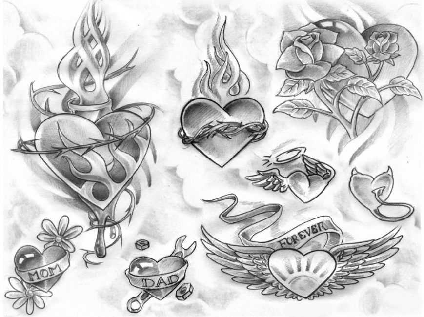 3Со свитком, в котором написано имя возлюбленного (возлюбленной). Для изображения такого сердца используют красный цвет, украшают его цветами, по центру набивают надпись — признание в любви или чьи-то инициалы.