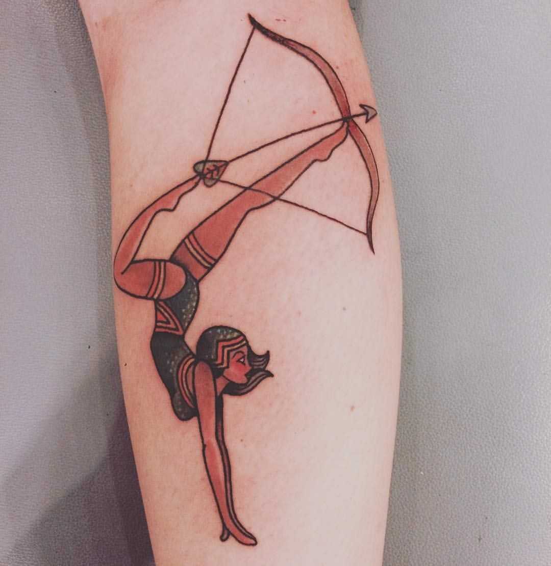 К более современным вариантом относятся татуировки в которых не соблюдены классические каноны. В данном варианте стрелец может изображаться в виде парня или девушки со стрелами.