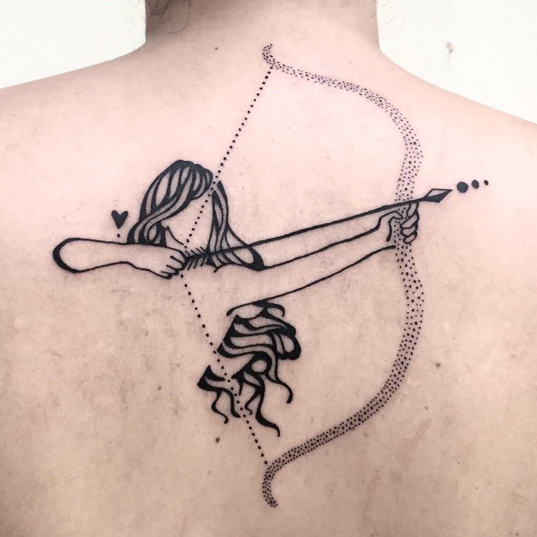 Татуировка с символом Стрельцов означает стремление к свободе и независимости, раскрытие творческого потенциала. Девушки нередко дополняют символ или созвездие космическими элементами, цветами, линиями.