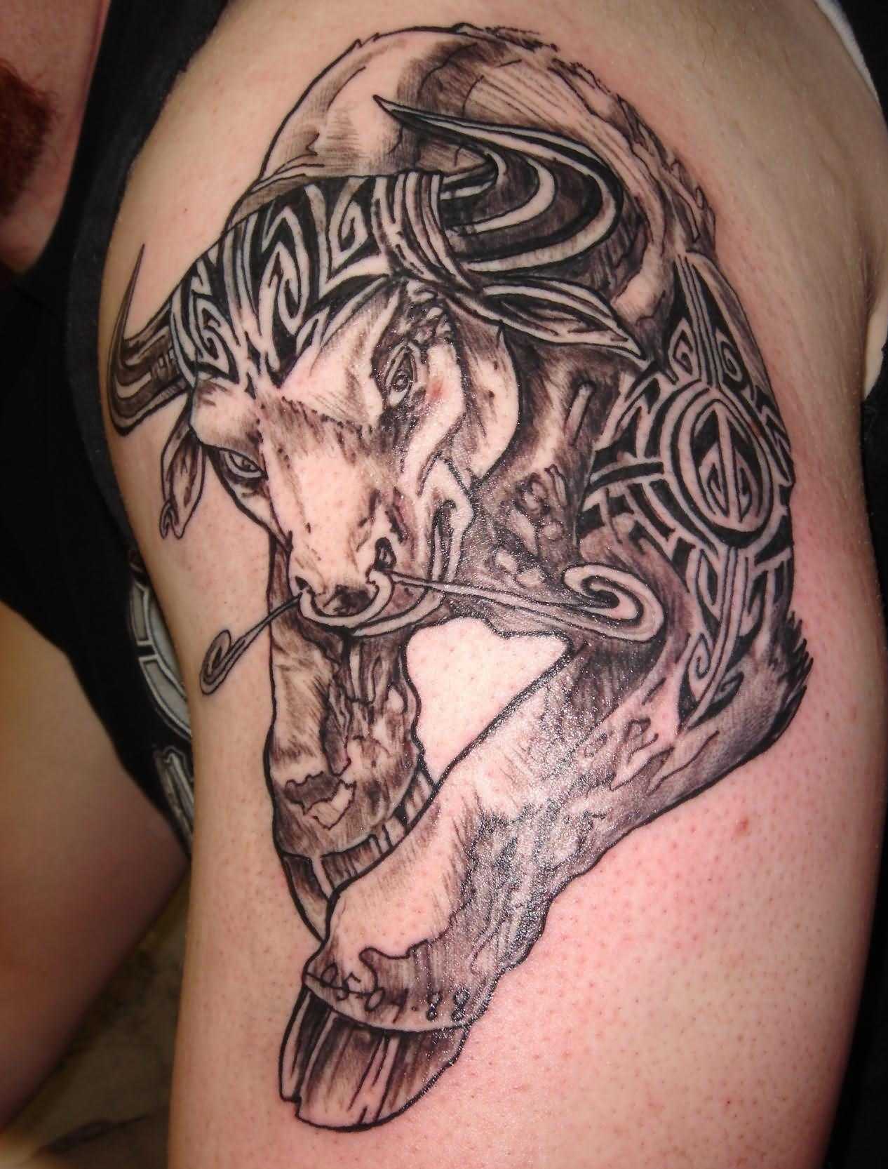 Многие знают, что бык по праву считается олицетворением мужественности и силы. Поэтому не удивительно, что его часто выбирают для татуировки юноши и более старшие мужчины. Ведь это позволяет продемонстрировать окружающим, насколько представитель сильного пола силен, что может быть надежным щитом для своих близких и любимых людей.
