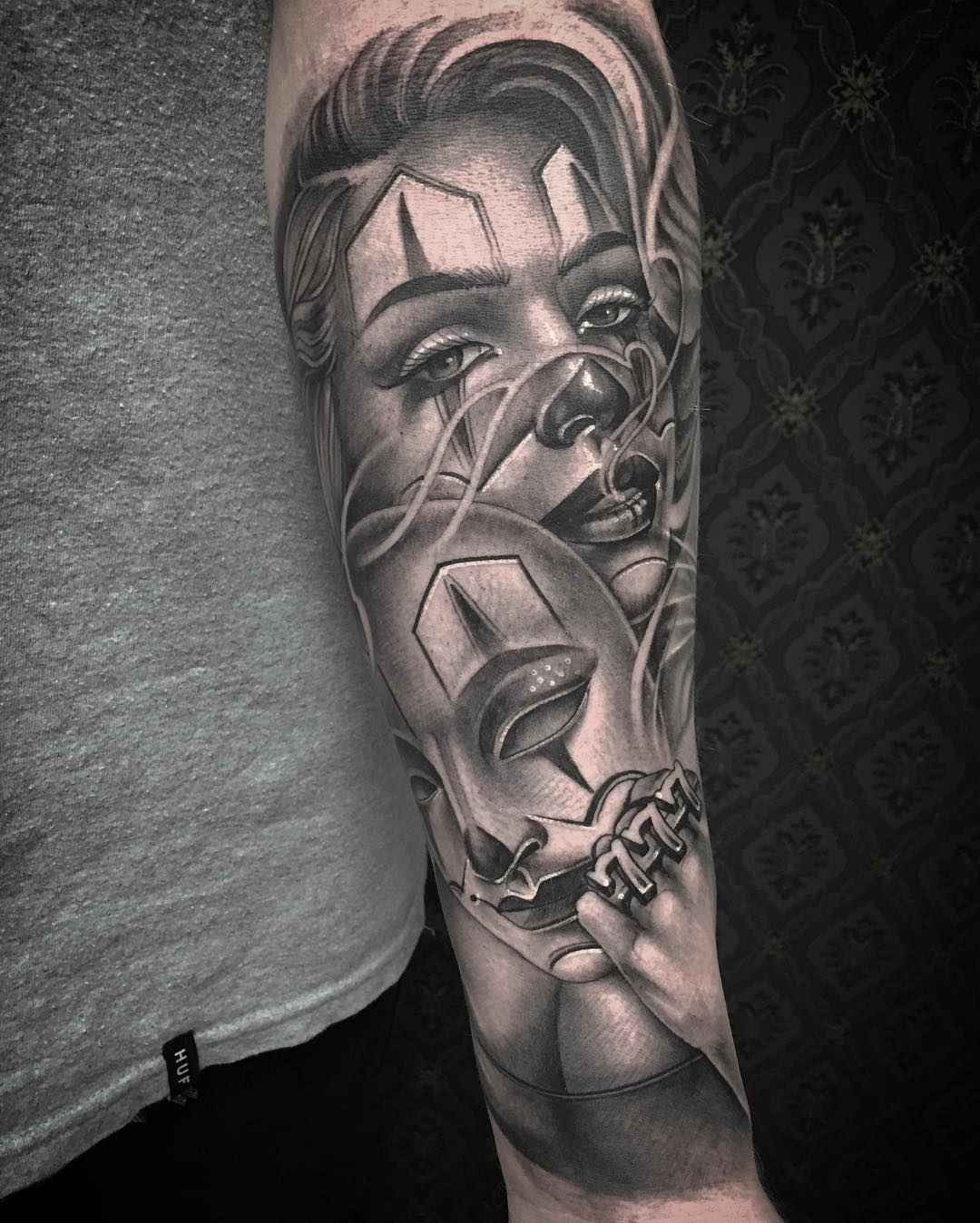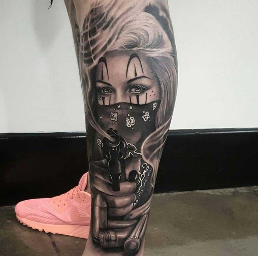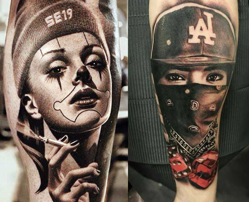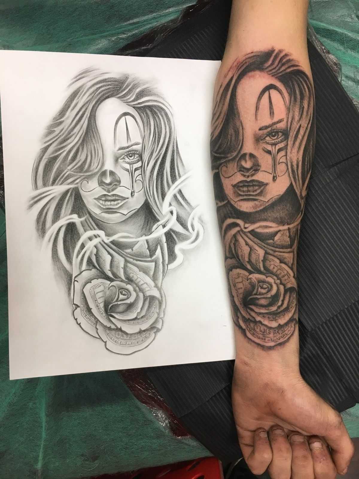 Лучшие татуировки чикано, девушка с банданой и клоун