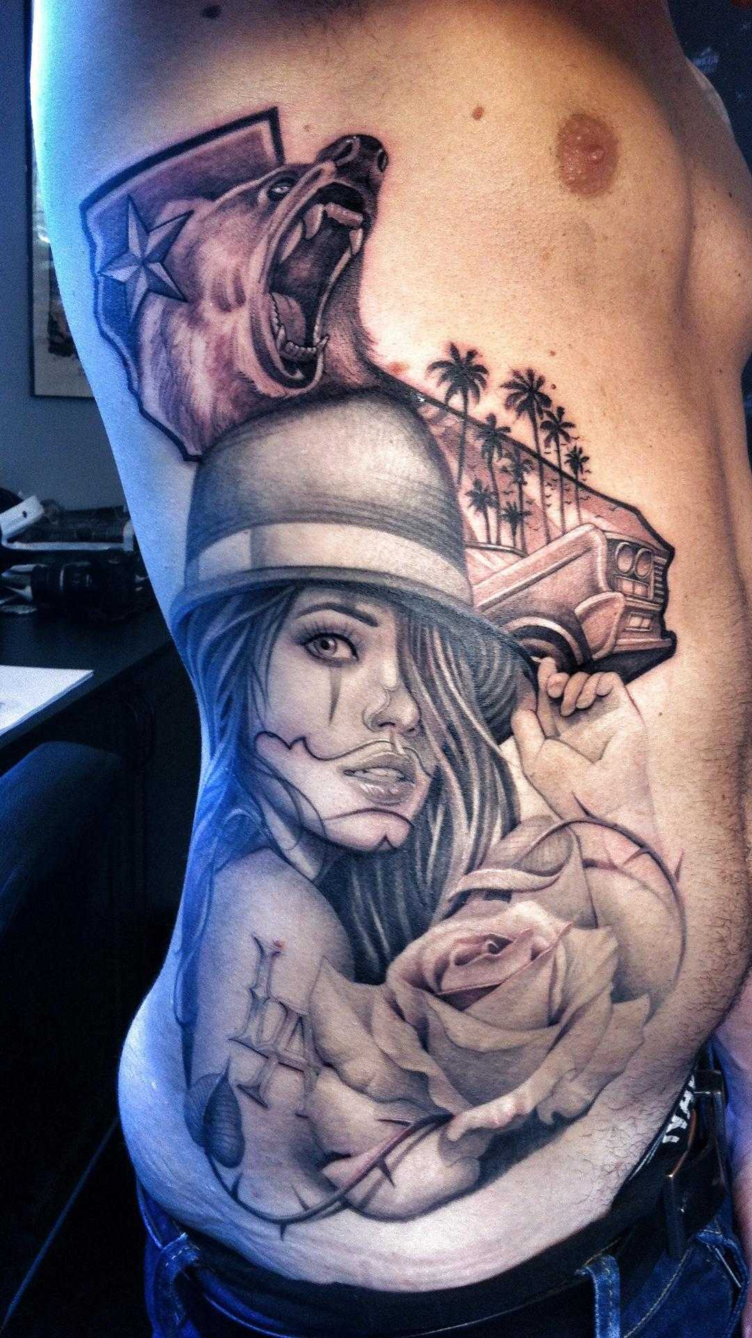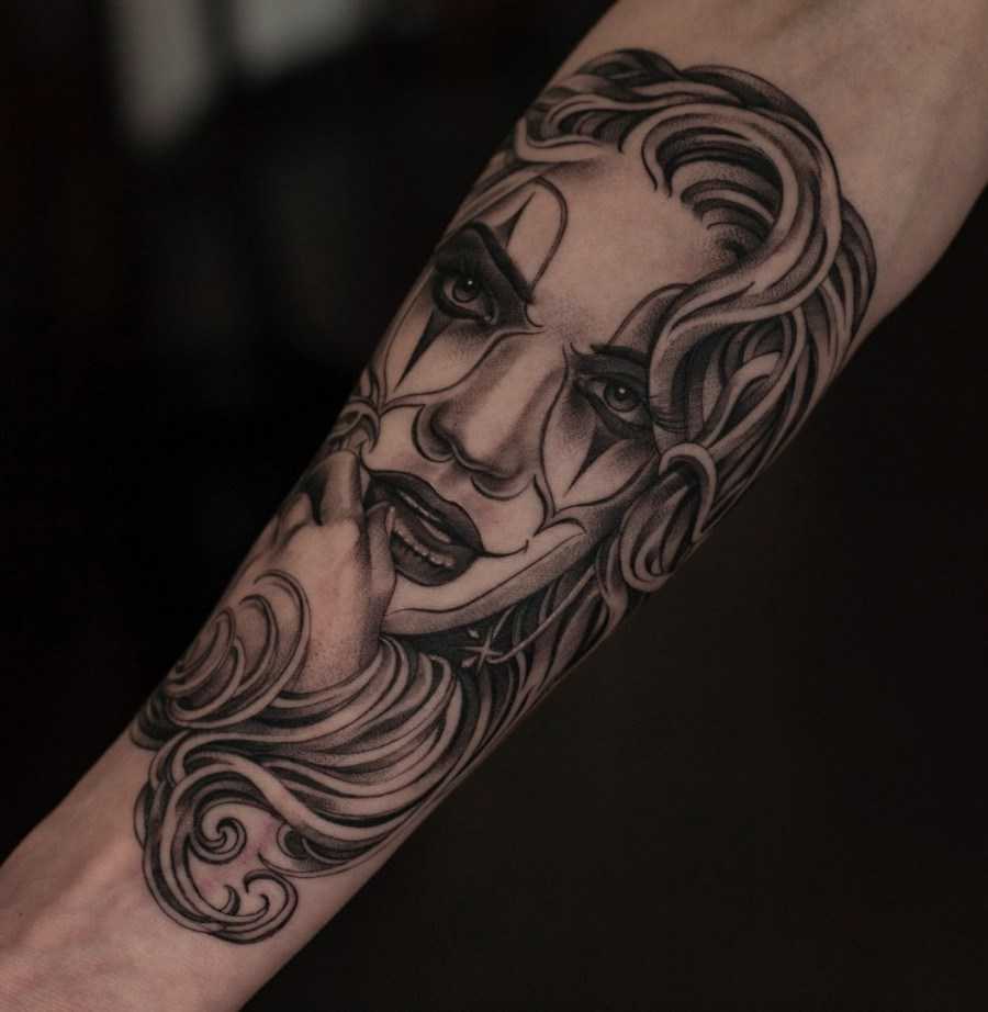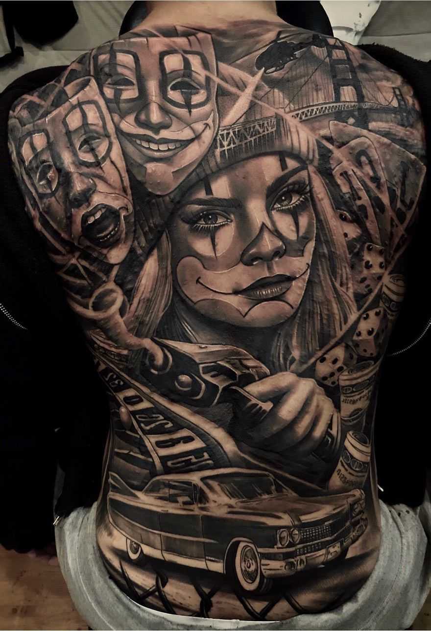 Лучшие татуировки чикано, девушка с банданой и клоун