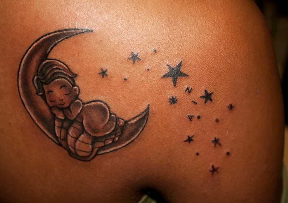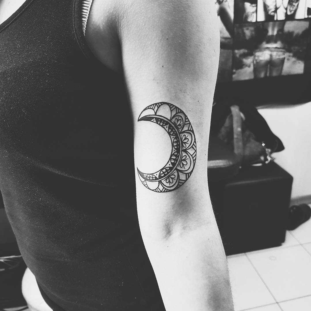 Татуировка в виде полумесяца, объединенного со звездой символизирует принадлежность собственника тату к мусульманству, праведность его жизненного пути. В Китае Луна – это символ темных сил, характерную слабой половине человечества энергию Инь. Астрологическое значение татуировки луны – тепло, ласка, нежность и забота, которую проявляет мать.