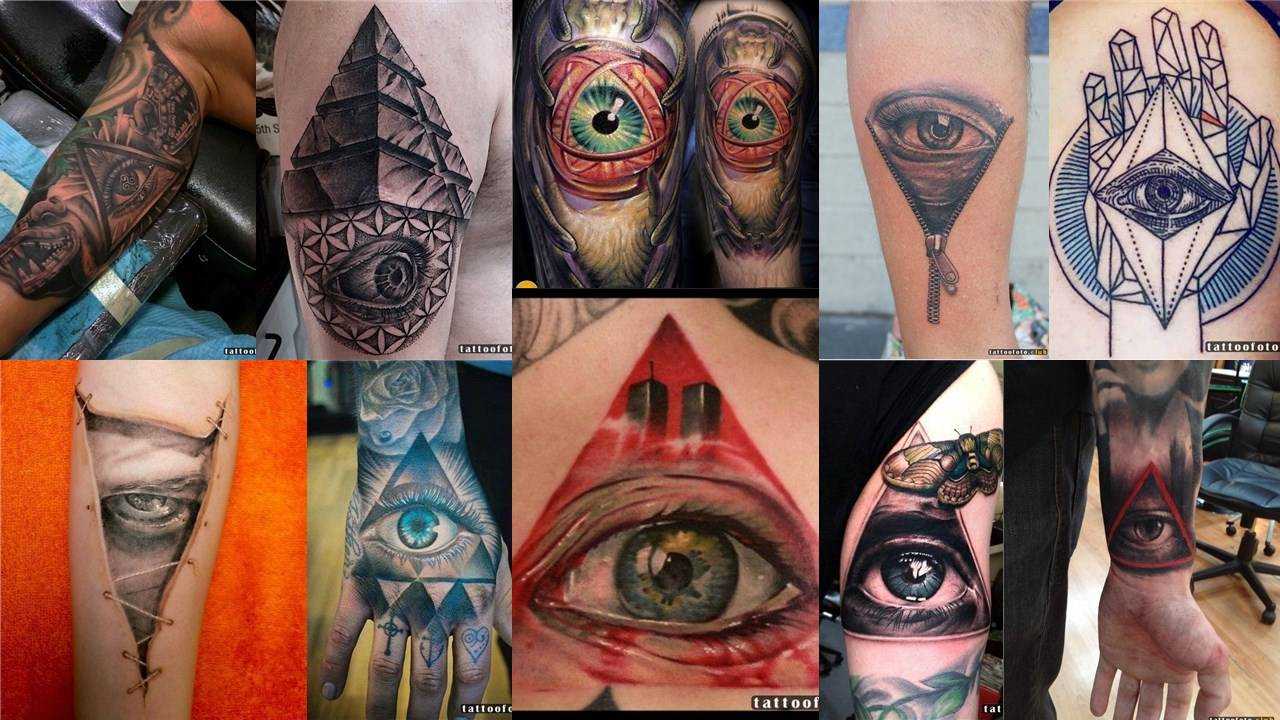 Распространенной татуировкой является всевидящее око, заключенное в треугольник. Такой символ берет начало из масонского религиозного течения. Тату наносили для того, чтобы обрести тайное знание, проникнуть в сознание Вселенной и стать частью высшего разума. Считается, что сочетание глаза и треугольника может пробудить в человеке божественную сущность и способность видеть сквозь время.