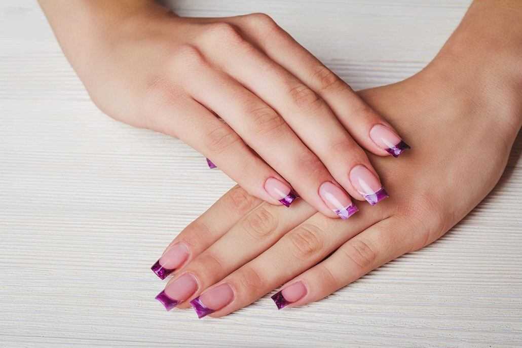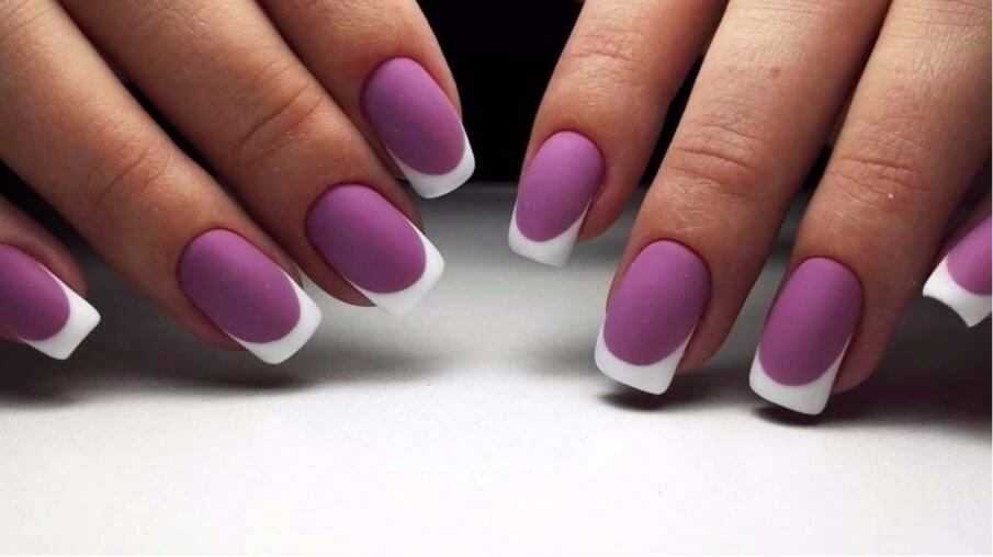 Ногтевые пластины короткой длины совсем не являются преградой для выполнения французского маникюра в сиреневых тонах. Природная длина очень красиво смотрится в таких оттенках и сделает ваши ручки ещё изящнее.