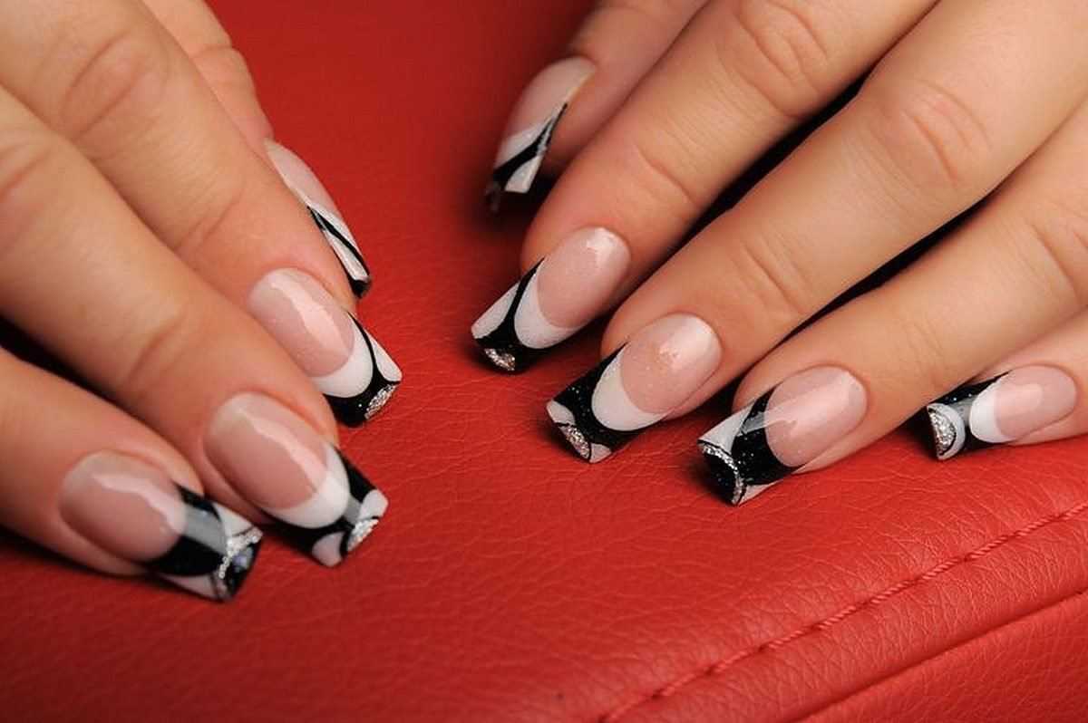 Черно-белый френч для острых ногтей