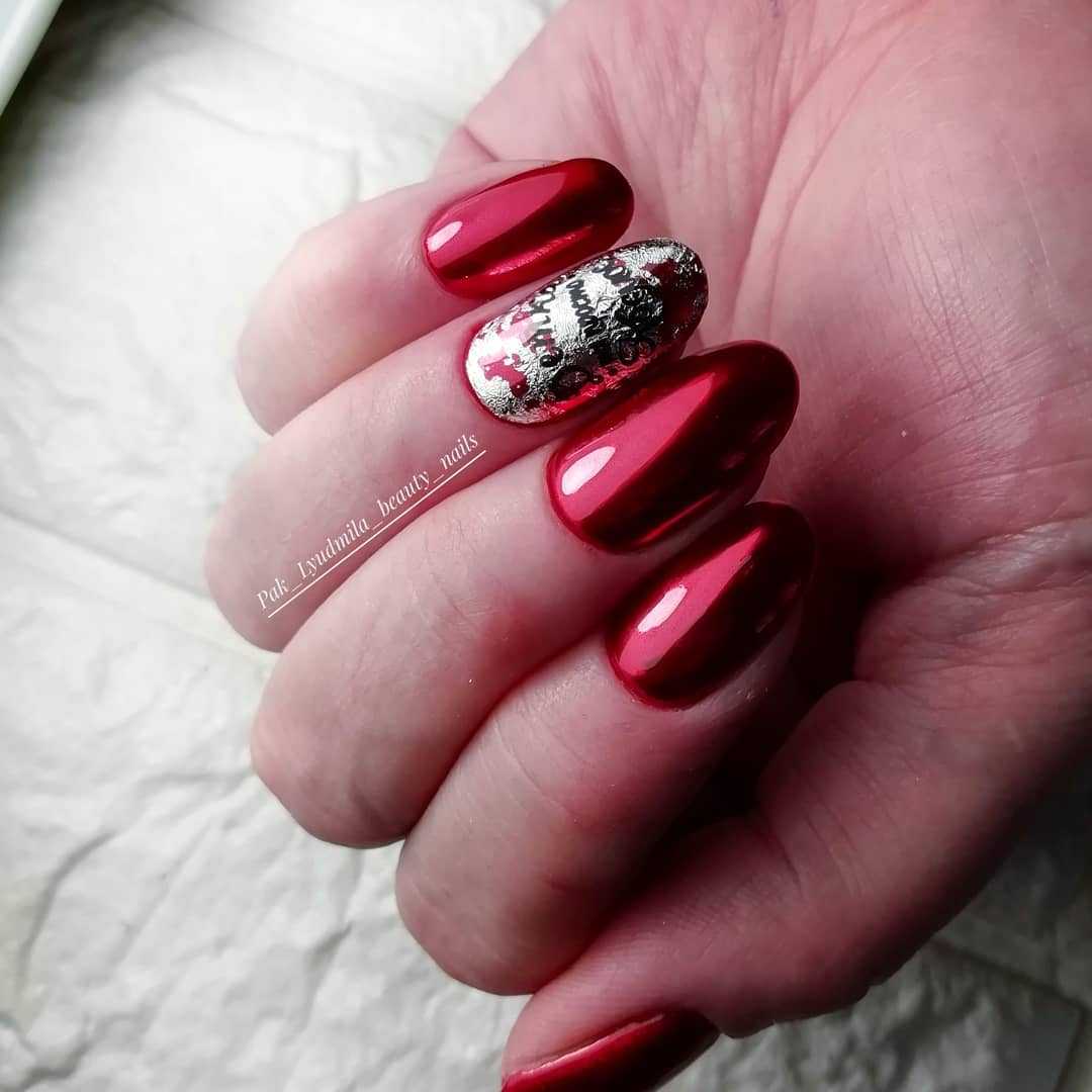 Не стоит расстраиваться любительницам более яркого оформления ногтей. Ведь такая цветовая гамма просто незаменима для образа на вечеринку или праздничное мероприятие. Отлично смотрится маникюр в синем, бордовом, коричневом или красном цвете. Особенно, если дополнить его россыпью блесток, страз или другого декора. Что касается текстуры покрытия, то в 2020 году уместным будет как глянцевый, так и матовый маникюр. Весьма интересно смотрится оформление «жидкой фольгой», которое всегда выглядит достаточно ярко и смело. Также отлично смотрится оформление с помощью дополнительных деталей. Это могут быть стразы, втирка, блестки, глиттер и другой декор. Каждый из них дает совершенно разный эффект, поэтому перед выбором обязательно посмотрите несколько примеров.
