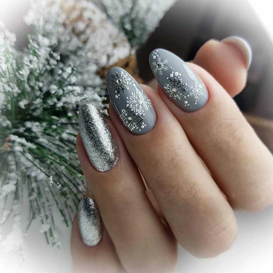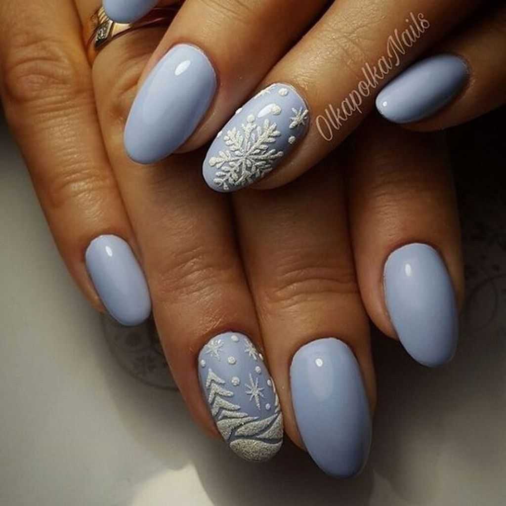 В зимнее время года огромной популярностью пользуются светлые нейл-арты с жемчужной или зеркальной втиркой. Они отлично гармонируют с верхней одеждой, не создают акцентов в образе, при этом смотрятся изумительно красиво.