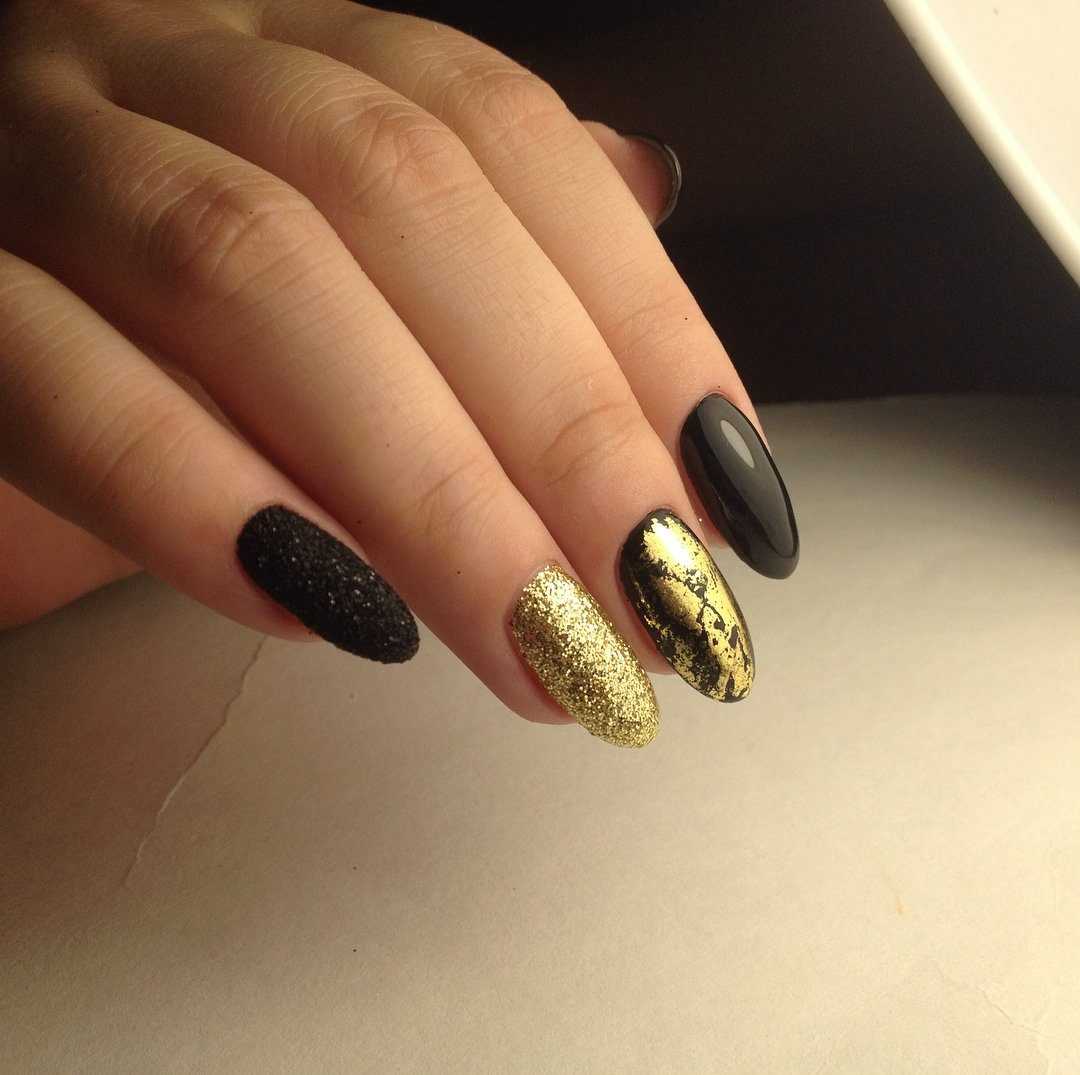 Главное правило здесь — не сходить с ума от золота))) достаточно расставить акценты на одном-двух ногтях, это касается и других оттенков блесток.