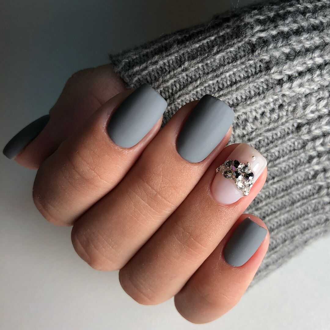 Актуальная палитра сезона позволит создавать превосходный маникюр с матовым покрытием. Черный, фиолетовый, красный, винный, темный синий, зеленый и другие темные и насыщенные оттенки – классика матового нейл-дизайна, особенно в однотонном исполнении.
