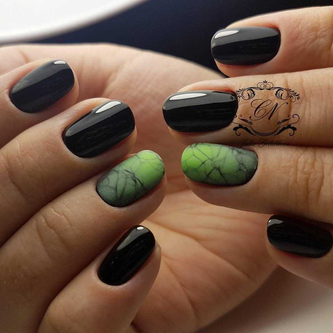 Тёмный цвет в этом сезоне прекрасен тем, что он стал универсальным. Матовое или глянцевое покрытие, монодизайн или декоративные украшения и различные принты, длинные или короткие ногти – любой из вариантов маникюра будет популярен. Неимоверная слава досталась креативным рисункам на больших пальчиках. Профи рекомендуют изображать абстракцию и геометрию, флористические мотивы и хищные принты, использовать при этом как яркие и красочные оттенки, так сдержанные и лаконичные. Также можно в модном маникюре акцентировать или украшать полностью ноготки хрустальной крошкой, выкладывать узоры из страз или бусин, применять фольгу и глиттер. Такой тёмный маникюр прекрасно дополнит вечерний или праздничный образ. Шикарно будет смотреться матовое покрытие, бархатный эффект и пудра. Очень изысканно можно дополнить тёмный маникюр деликатными блёсточками или блестящей лентой. По мнению дизайнеров, самыми главными цветами тёмного маникюра 2020 года стали – чёрный, бардовый, фиолетовый, зелёный и синий. Если вам по душе тёмный маникюр, или вы никак не решитесь создать такую красоту на своих ноготках, у нас сегодня есть очень красивые и крутые примеры дизайна тёмного маникюра в неповторимых образах и новых техника. Вдохновляйтесь и выбирайте!