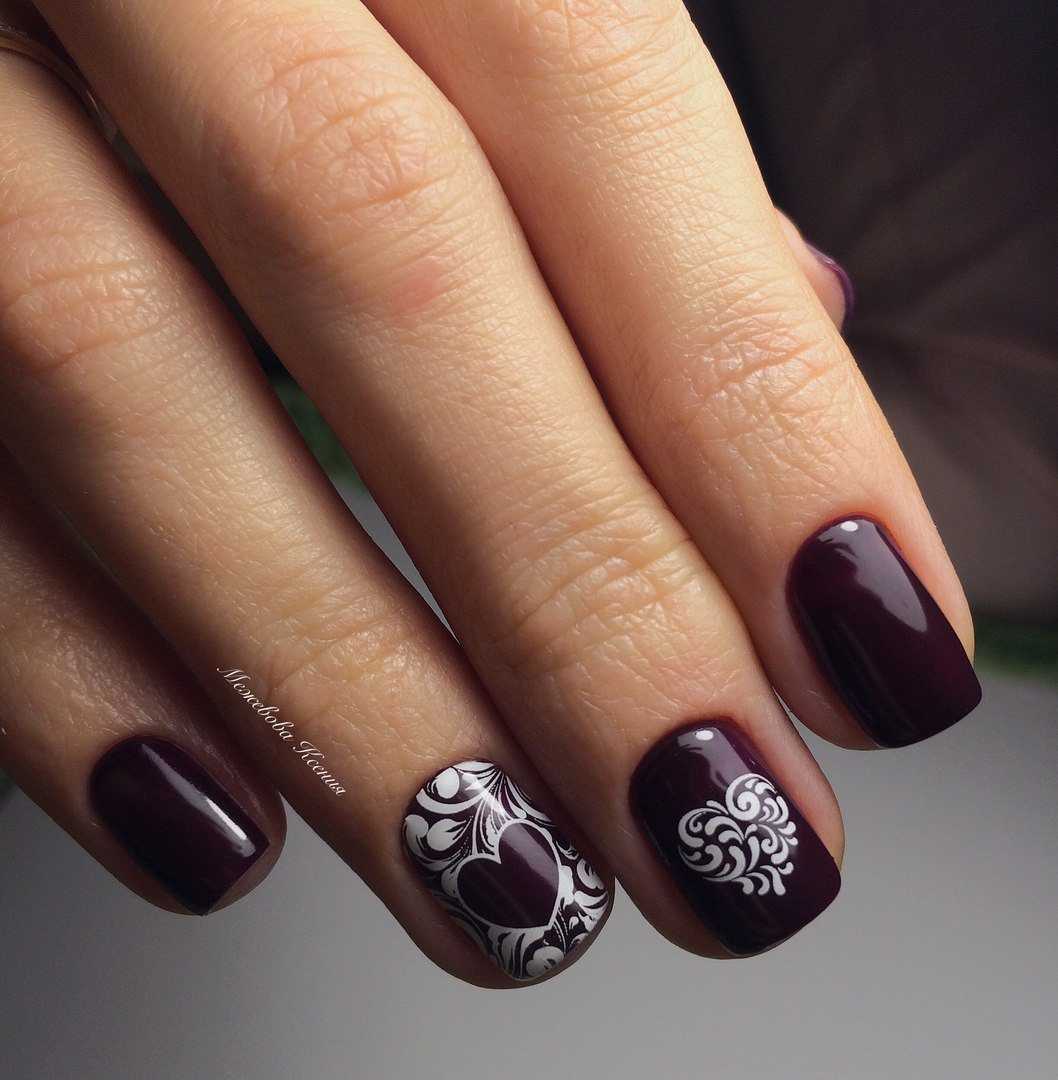 Для дизайна на коротких ногтях выбирайте такие темные оттенки как:
