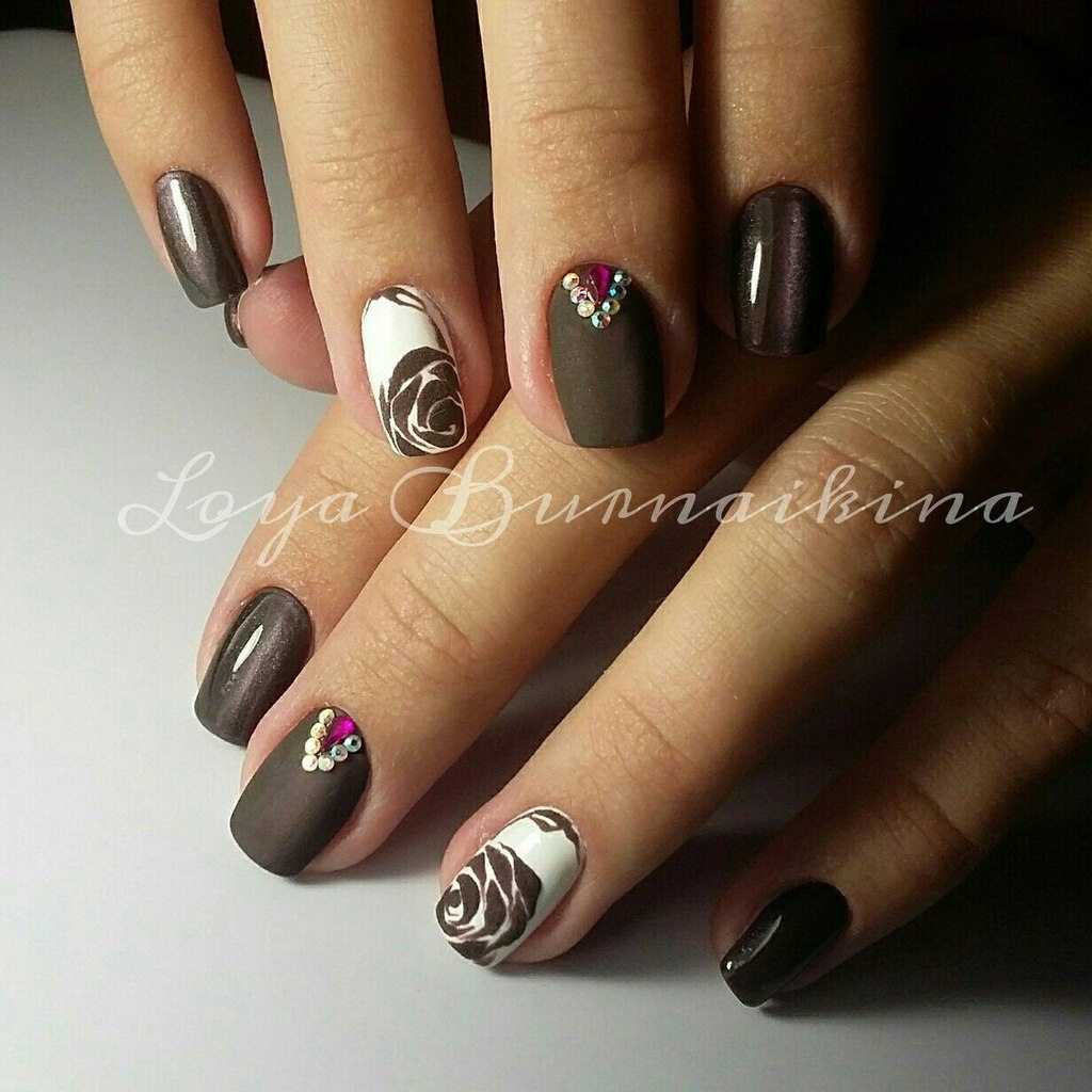 Этот маникюр безупречен: шоколадная цветовая гамма, маникюрная пудра и аккуратные маленькие камушки. Ни один осенний сезон не обходиться без маникюра в коричневых тонах.
