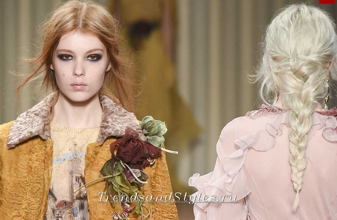 Прямые пряди выглядят, как будто бы их намочили и высушили на солнце, слегка взбивая – так видит модный образ Anna Sui. Из 70-х годов возвращаются естественные локоны, для которых достаточно заплести на ночь косички на мокрых волосах.