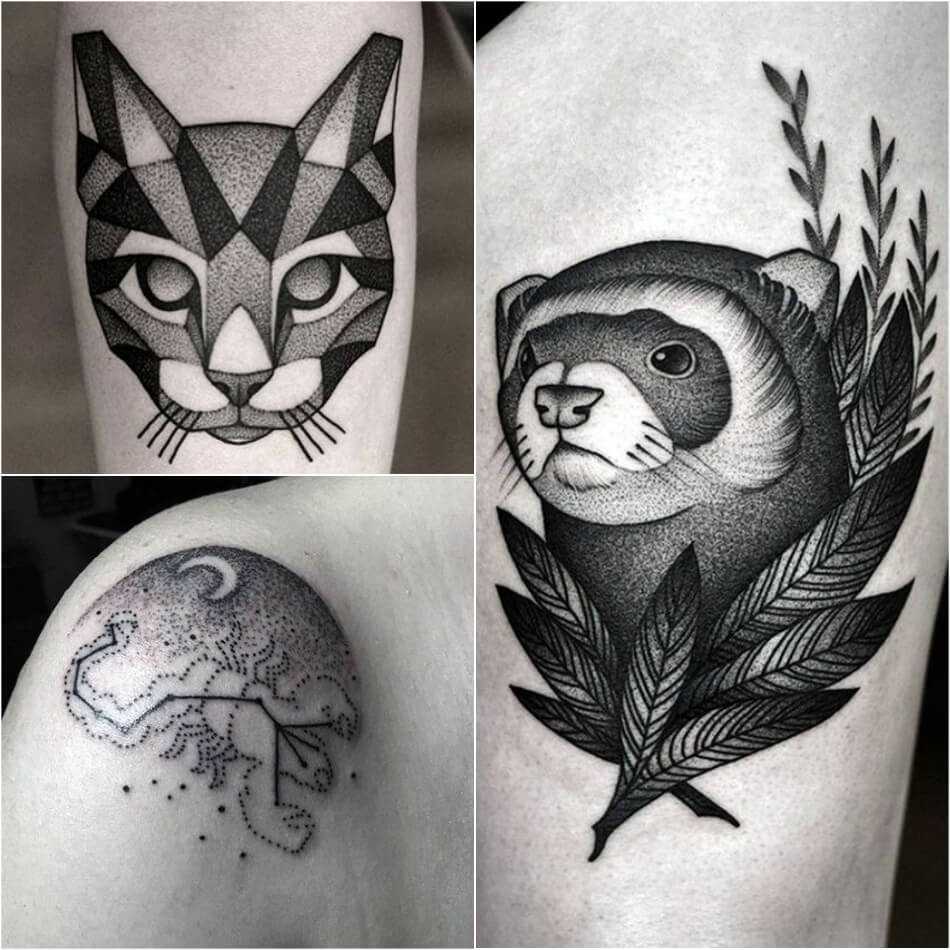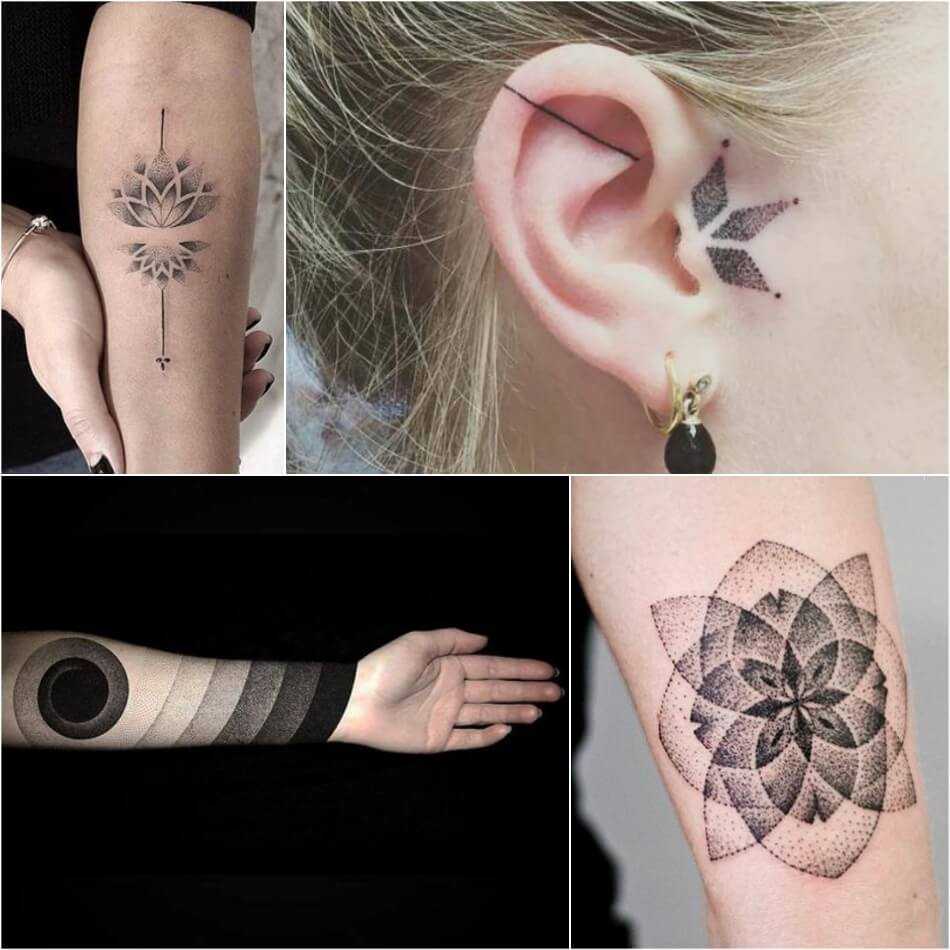 Тату Дотворк (англ. dotwork – «точечная работа») — это стиль татуировки, в котором рисунок выполняется при помощи специальной техники и состоит из точек. За счет разной плотности точек создается градиент и передача света и тени. Девушки отдают предпочтение орнаментам и мандалам на плече и предплечье. Очень необычно смотрится дотворк в тату с природными мотивами, например в тату с животными.