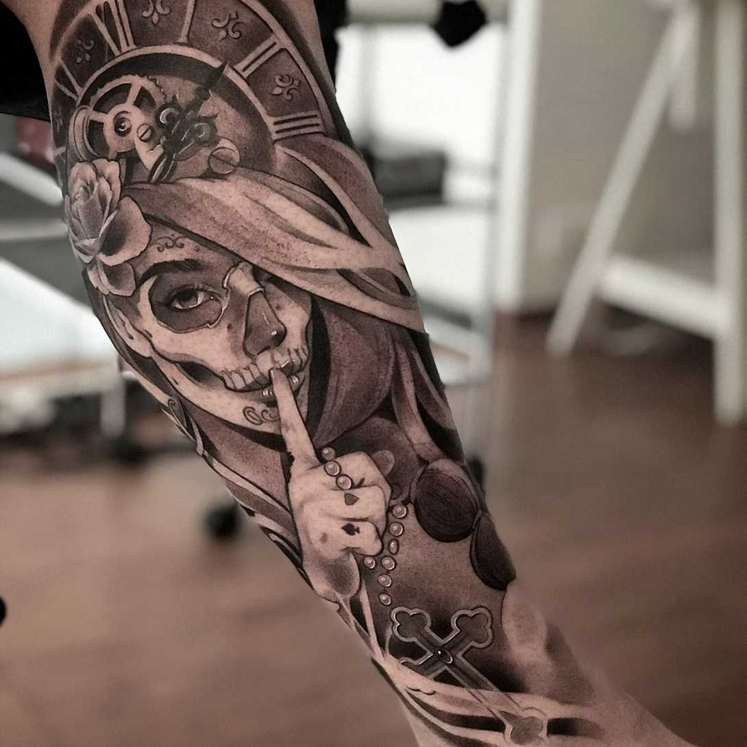 Практичность тату на голени — палка о двух концах. С одной стороны это шикарный аксессуар для жаркого лета, с другой – ограничение в одежде. Это напрямую касается девушек, предпочитающих короткие виды одежды. Но если смущения от наличия тату не наблюдается, то и думать о темной стороне медали не стоит.