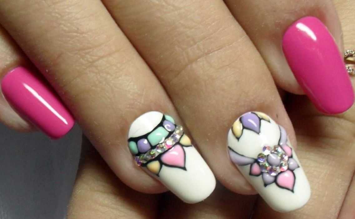 Любителям очаровательных и запоминающихся видов маникюра мастера советуют делать акцент на ногтях самых сочных оттенков цветовой гаммы. Также количество оттенков в одном маникюре может быть разным. Талантливый нейл-мастер всегда найдет отличный запоминающийся дизайн и гармонично дополнит разные элементы декора. Например, яркий оттенок рядом с крупными стразами смотрится стильно и элегантно.