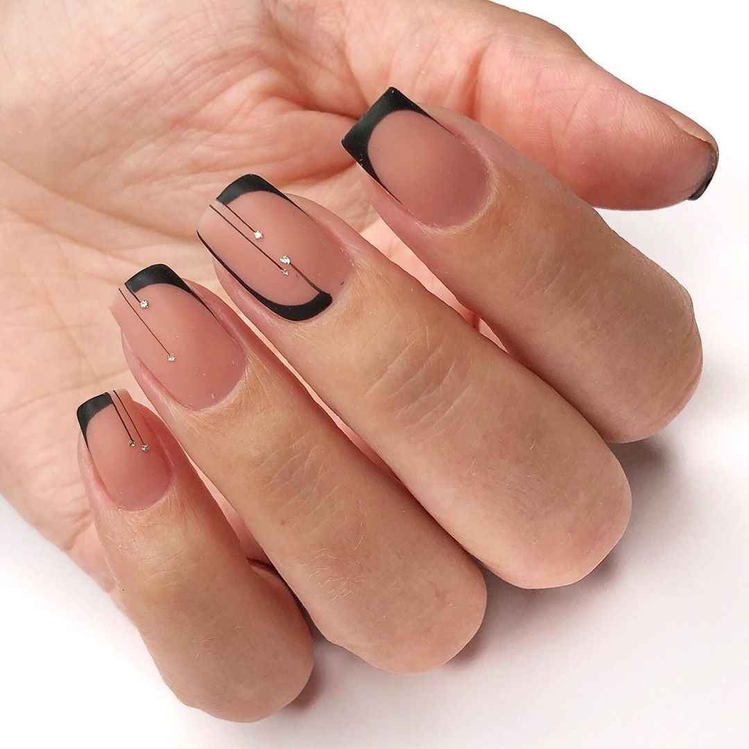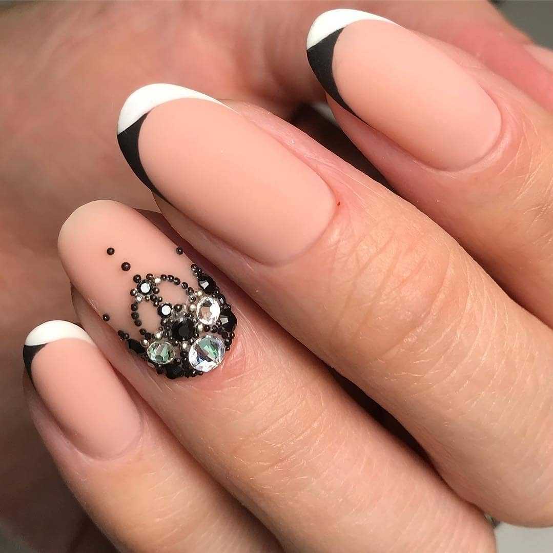 Сегодня модно комбинировать несколько стилей и техник выполнения дизайна ногтей воедино. Посмотрим, как смотрится френч с минимализмом, французский маникюр с элементами геометрических линий, фольгированных деталей или страз.