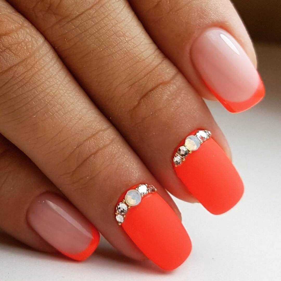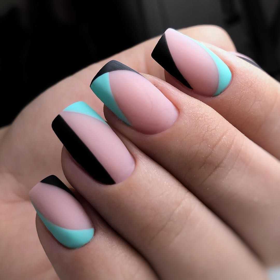 Сочетание цветов и декора в маникюре френч квадратной формы