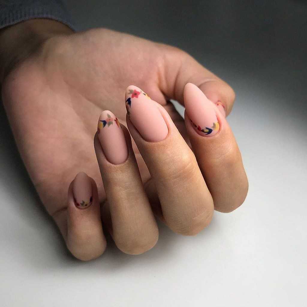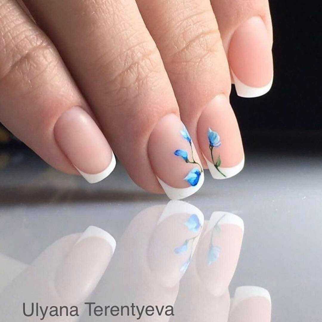 Флористический рисунок занимает лидирующее место в числе актуальных для 2020 года. Поэтому не удивительно, что его комбинируют с френчем. Разнообразные цветочки, листья, а также пальмы и даже ель можно изобразить на ногтях любой длины и формы. Главное — подобрать подходящие оттенки, чтобы такой дизайн смотрелся гармонично.