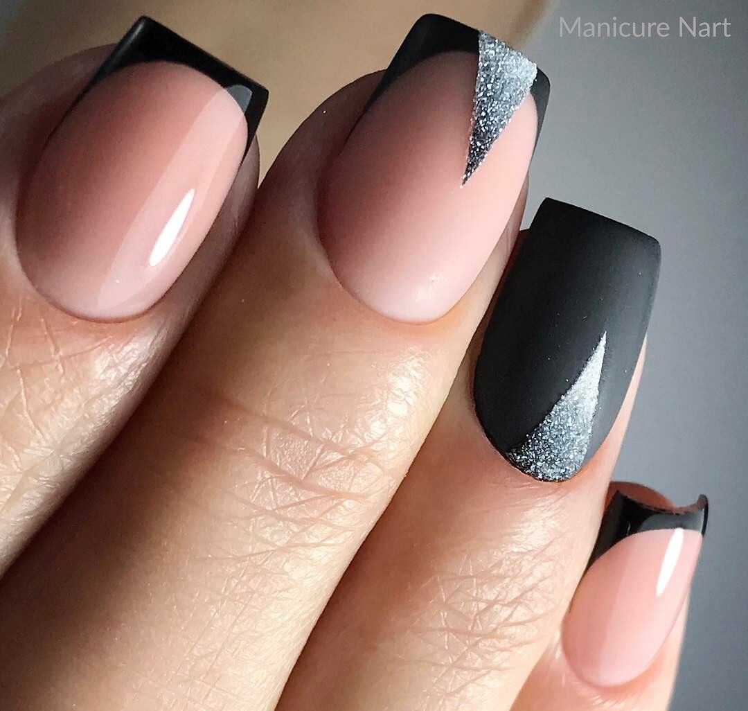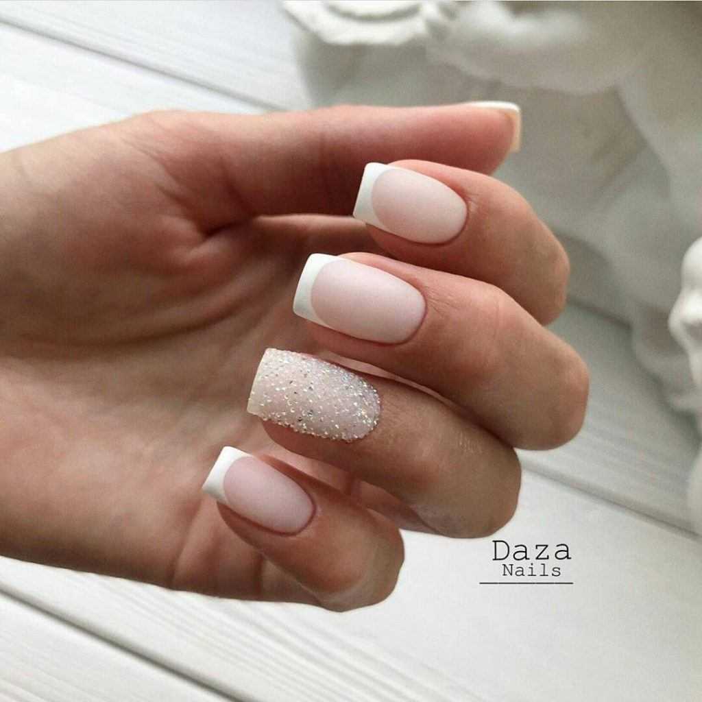 Часто блестками украшают кончик ногтевой пластины или базальную область, благодаря этому получается акцент в маникюре. В основном это делается только на нескольких ногтях. Этот вариант отлично подойдет для любого случая, потому что он не слишком яркий и выглядит нежно. Также многие мастера по маникюру используют блестки только в качестве акцента, а именно украшают рисунки. То есть изначально французский маникюр сочетается с монограммами, геометрическим рисунком, кружевными вставками, когда все готово, дизайн можно подчеркнуть блестками. В результате получается роскошный объемный маникюр с мерцающими деталями. Он подходит для любого случая, поэтому в 2020-2021 году он особенно актуален.