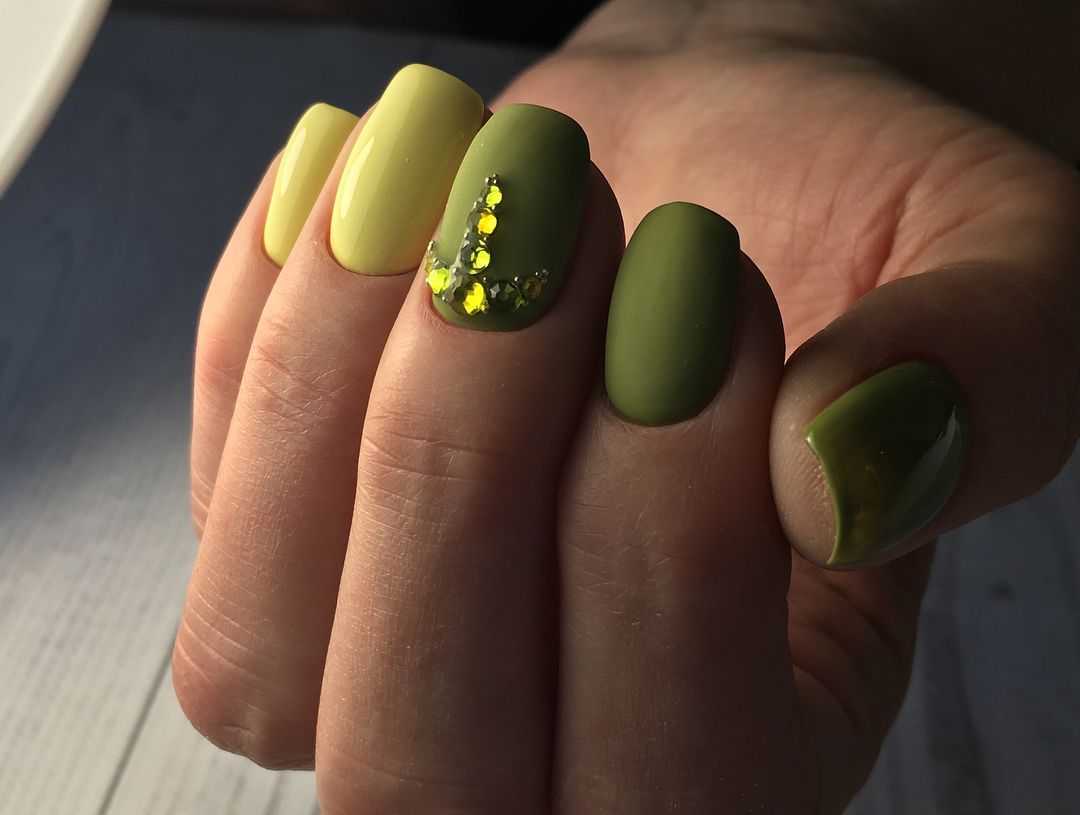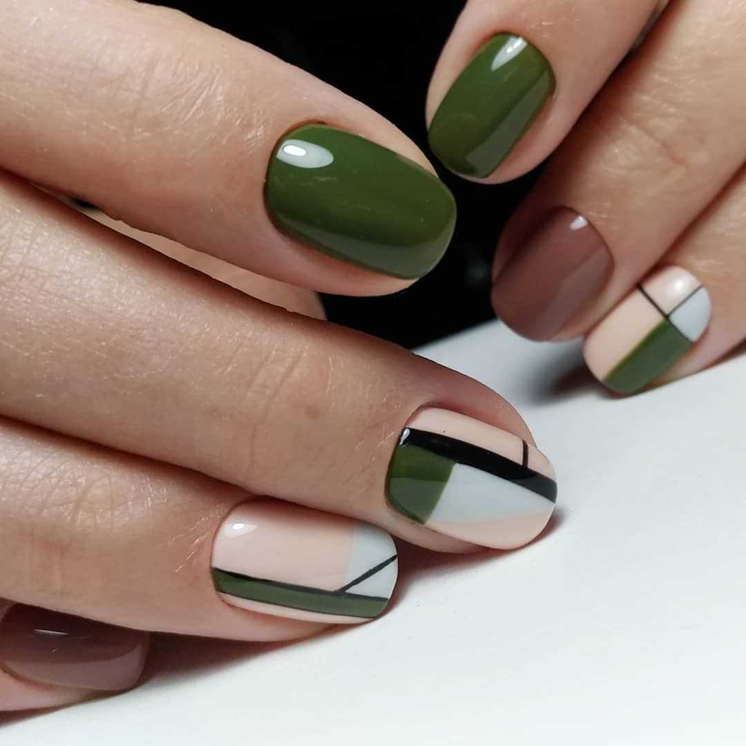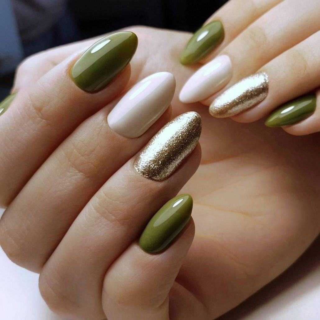 - Оливковый. Имеет легкий коричневатый отлив. Вариант для офисного маникюра.