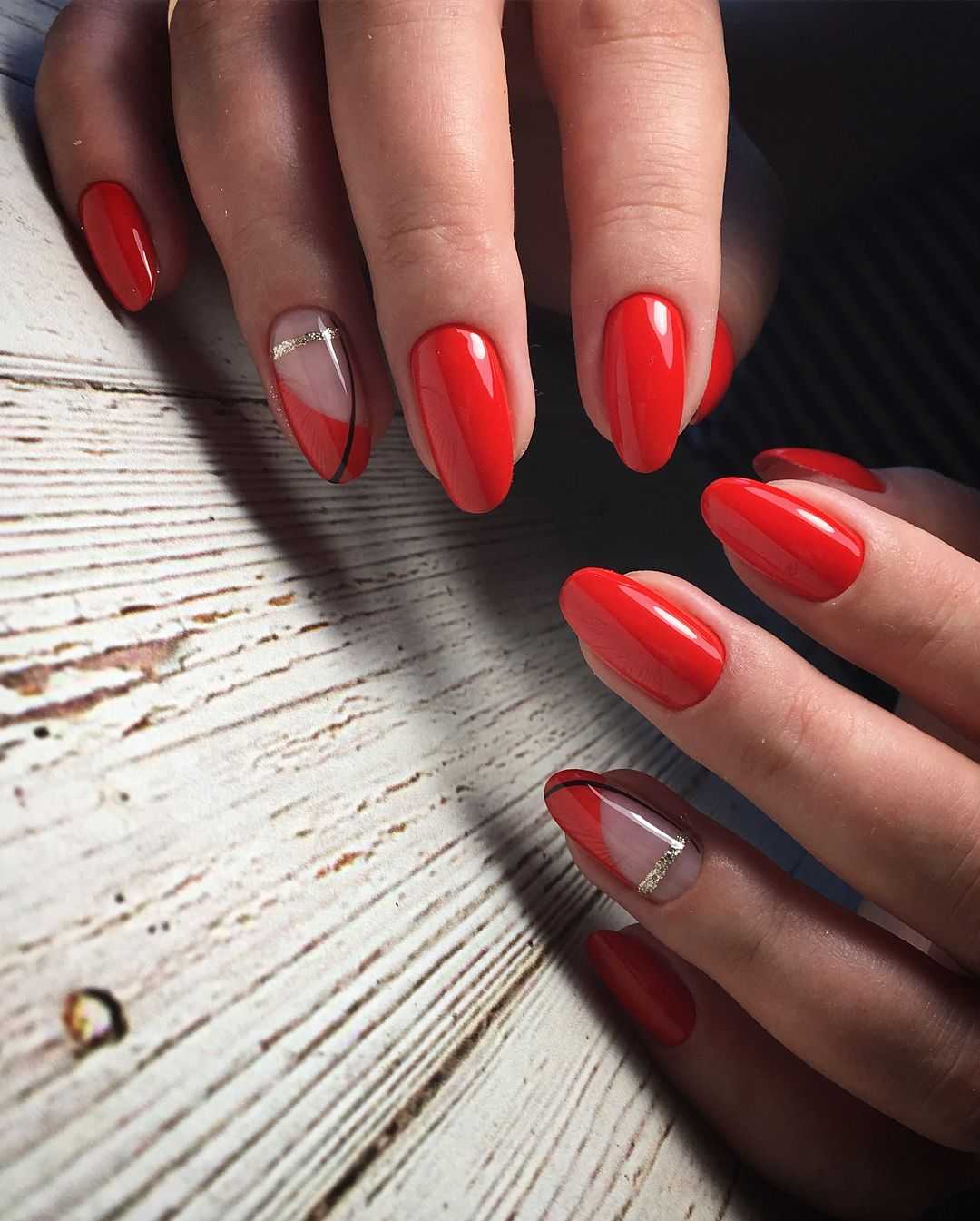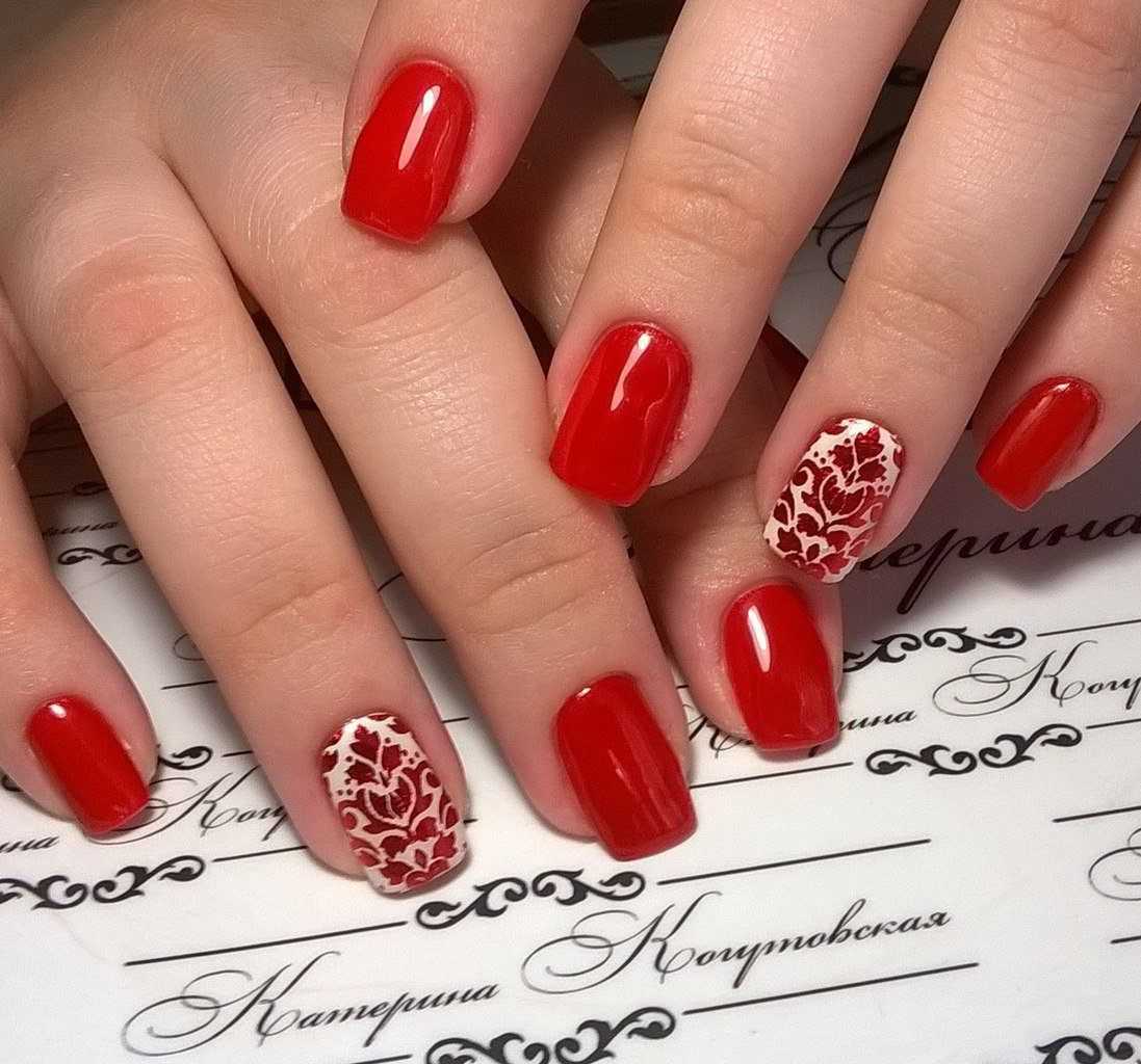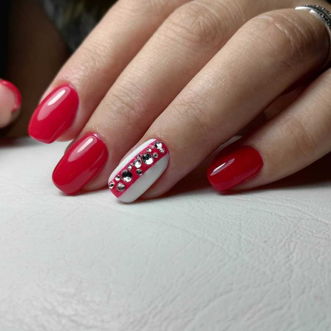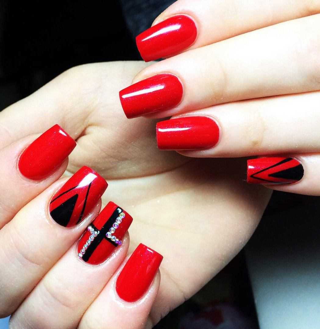 Оформление ногтей в красном цвете само по себе выглядит изысканно, стильно. Такой маникюр всегда будет главным акцентом, подчеркнет красоту рук и элегантность движений. Но все же, легкие контрастные оттенки лишь украсят его, добавят “изюминку”, которой порой не хватает дизайну.