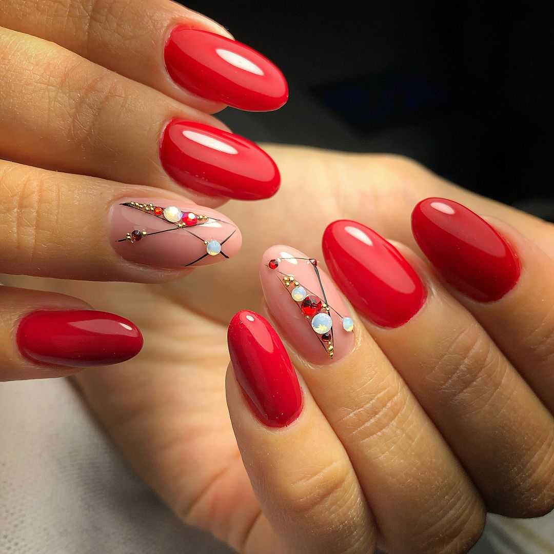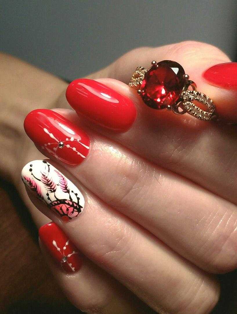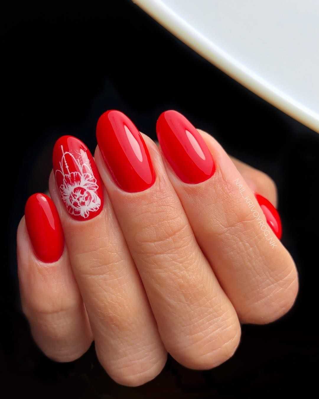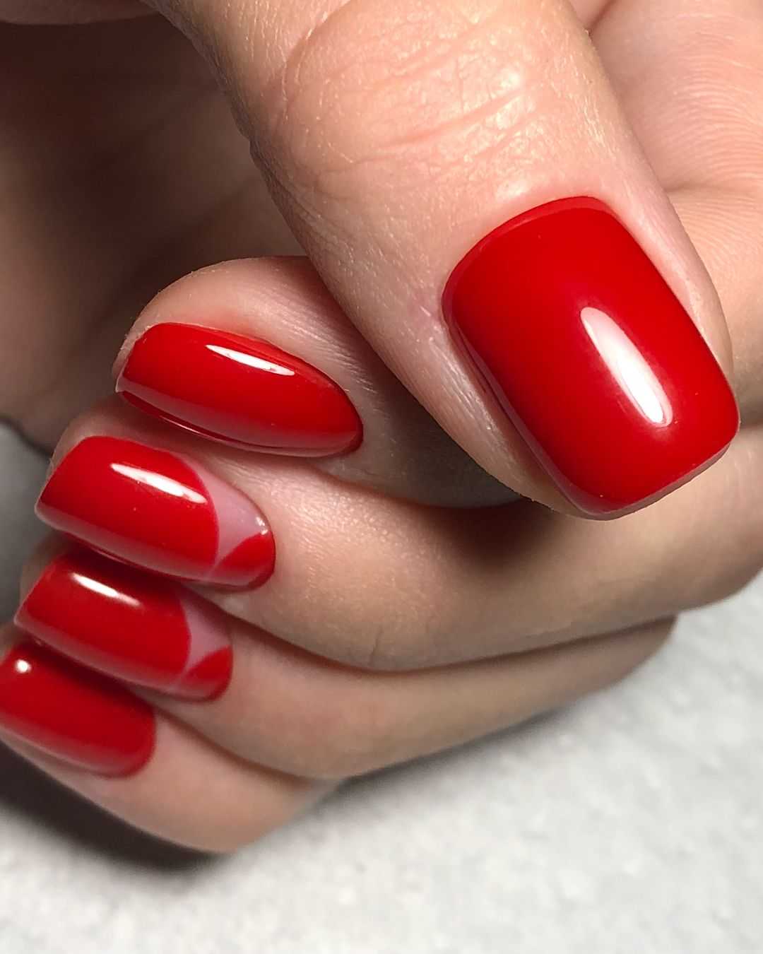 Оформление ногтей в красном цвете само по себе выглядит изысканно, стильно. Такой маникюр всегда будет главным акцентом, подчеркнет красоту рук и элегантность движений. Но все же, легкие контрастные оттенки лишь украсят его, добавят “изюминку”, которой порой не хватает дизайну.