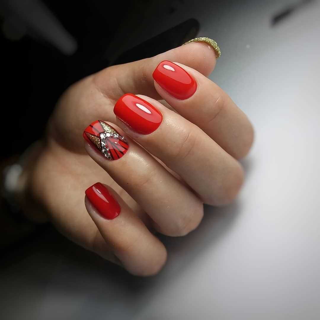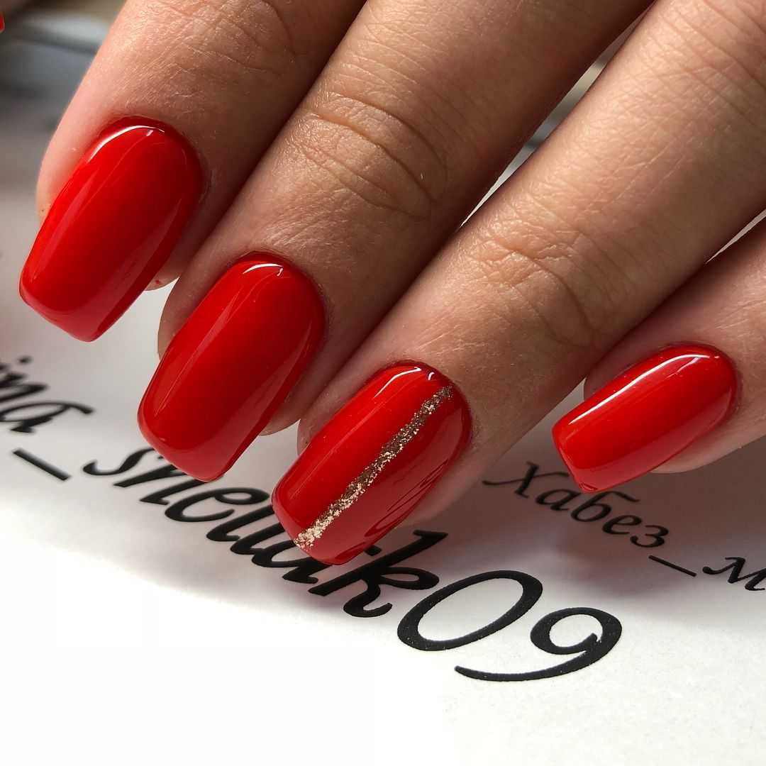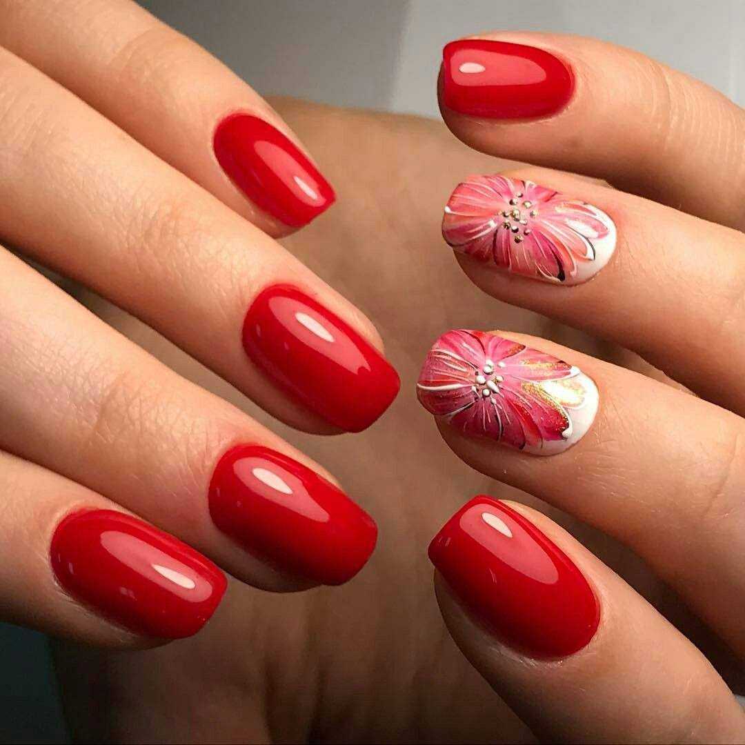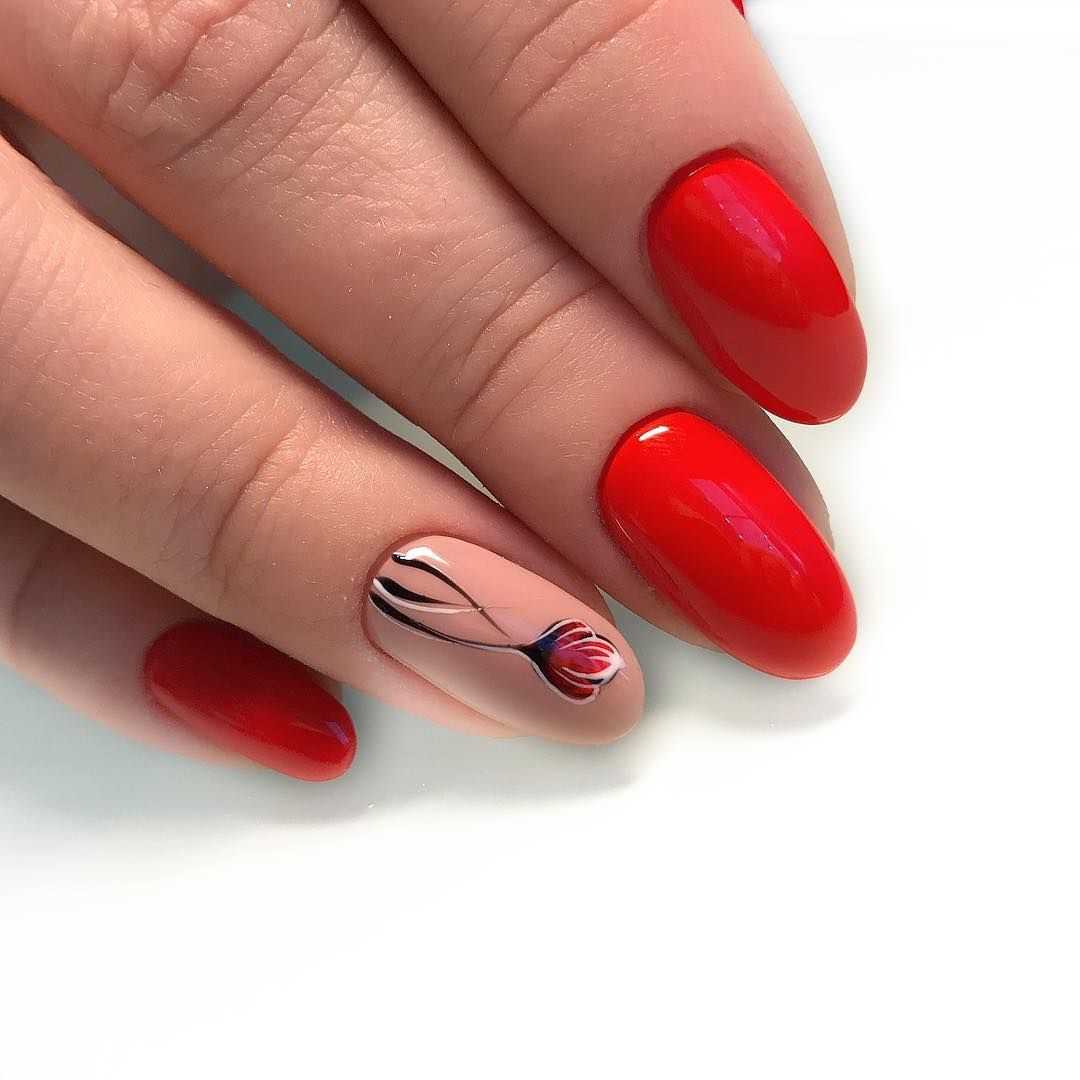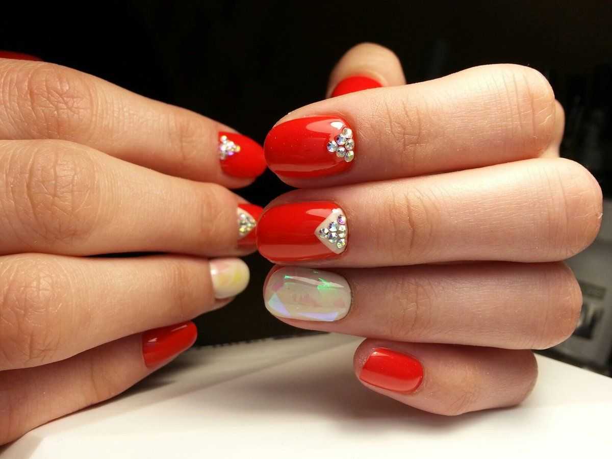 Оформление ногтей в красном цвете само по себе выглядит изысканно, стильно. Такой маникюр всегда будет главным акцентом, подчеркнет красоту рук и элегантность движений. Но все же, легкие контрастные оттенки лишь украсят его, добавят “изюминку”, которой порой не хватает дизайну.