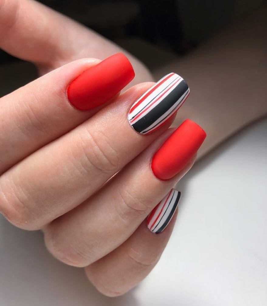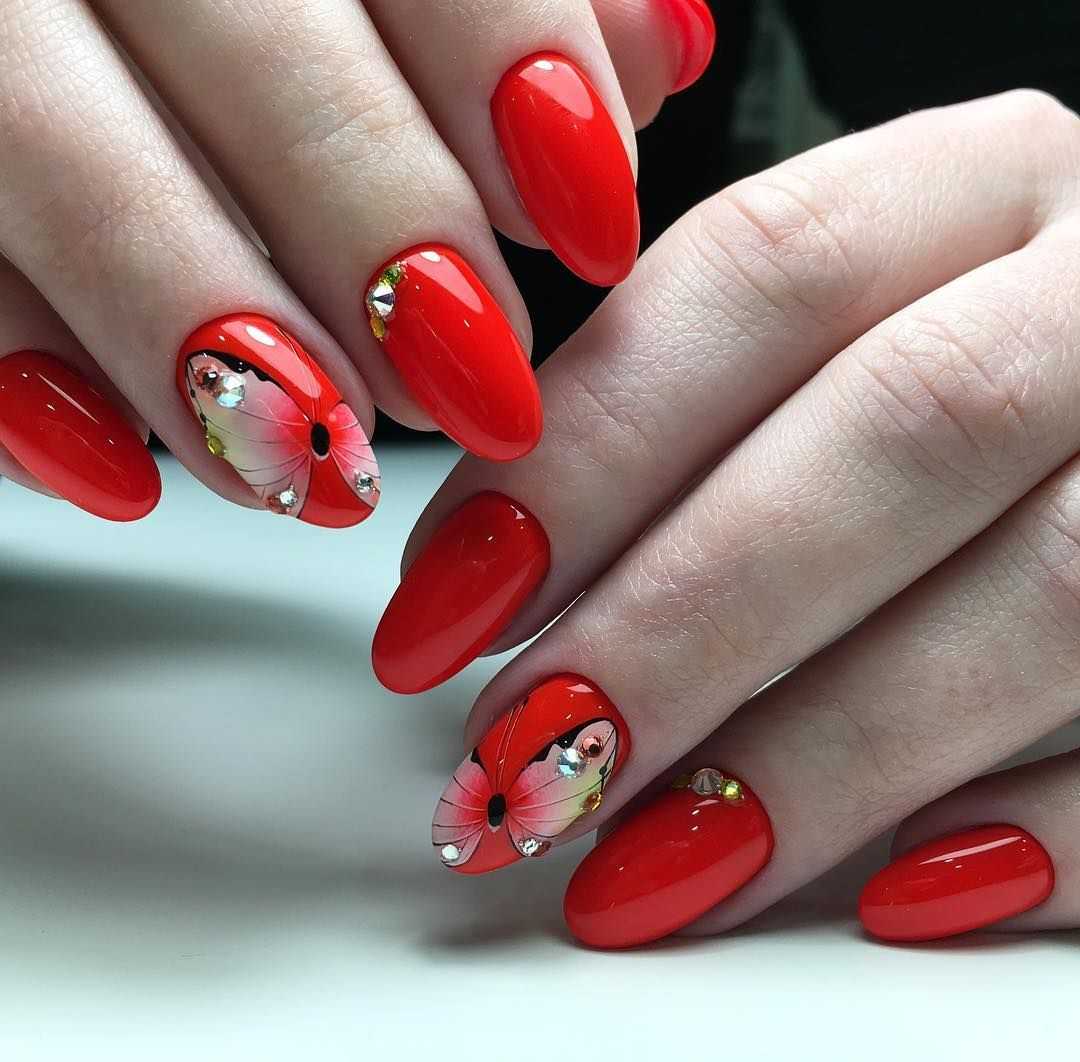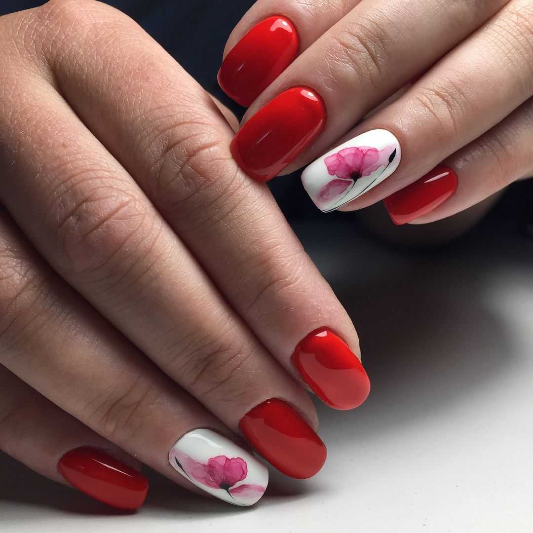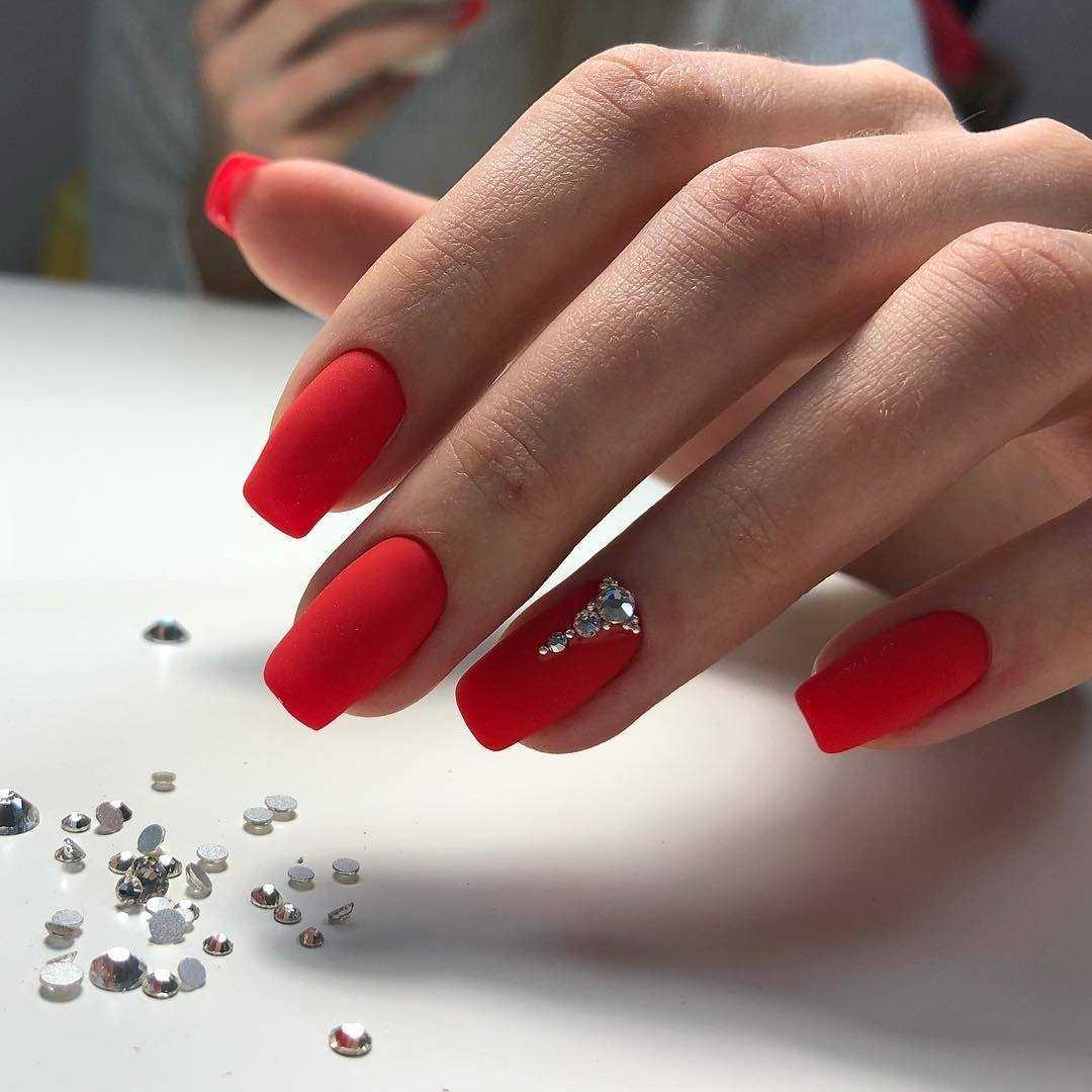 Оформление ногтей в красном цвете само по себе выглядит изысканно, стильно. Такой маникюр всегда будет главным акцентом, подчеркнет красоту рук и элегантность движений. Но все же, легкие контрастные оттенки лишь украсят его, добавят “изюминку”, которой порой не хватает дизайну.