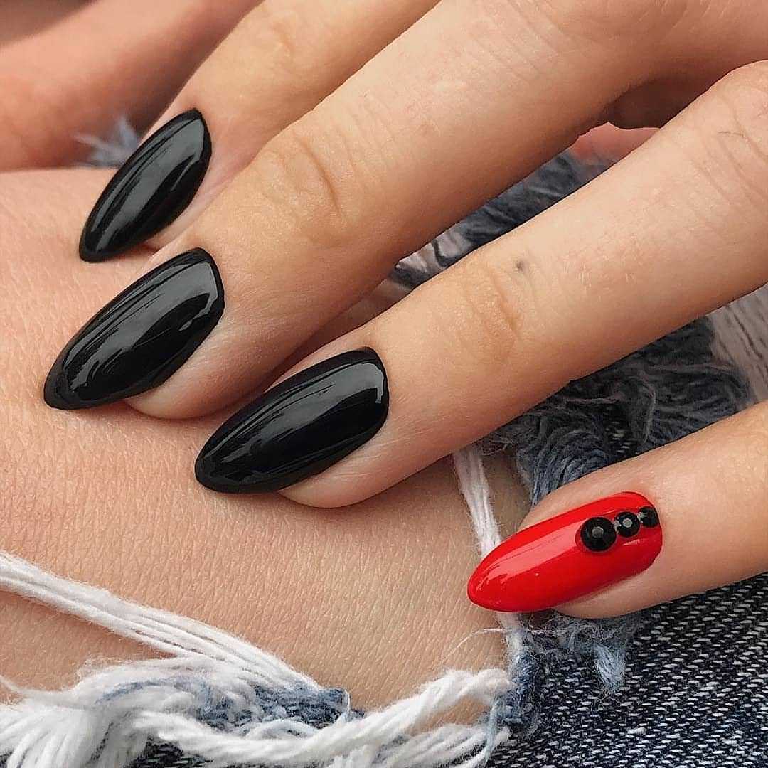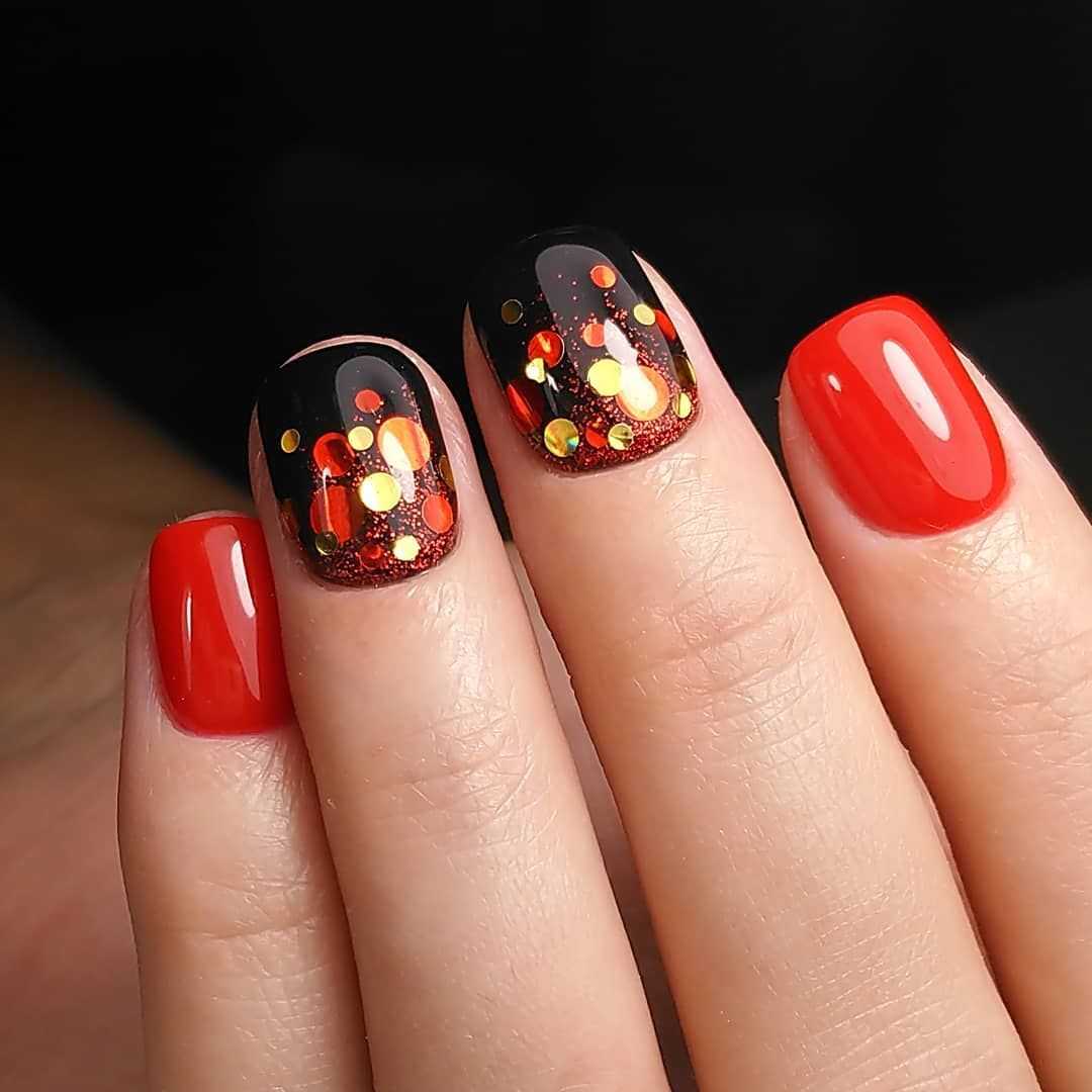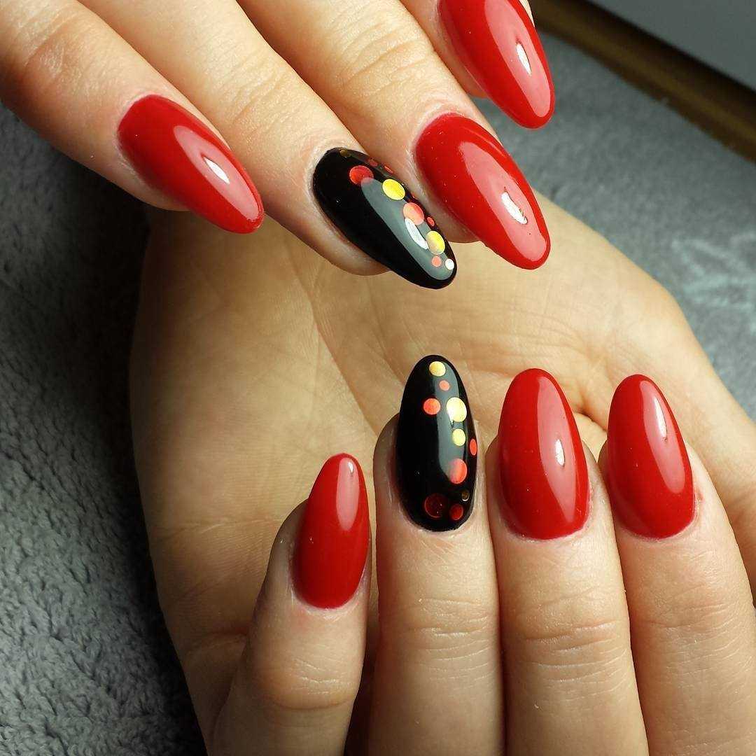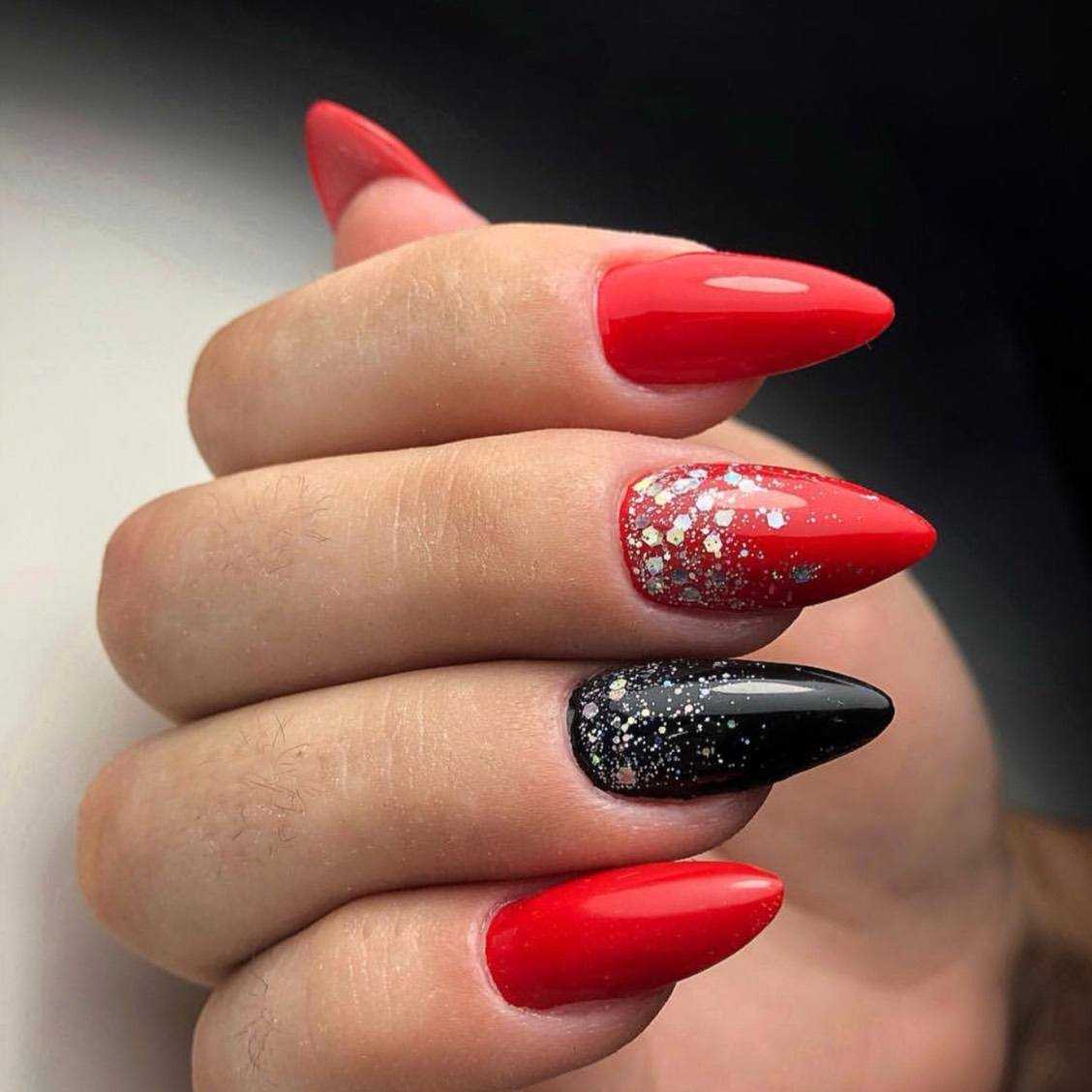 Для создания праздничного маникюра многие девушки выбирают черный цвет в качестве основного и золотистый. Его не обязательно использовать на всех ноготках, достаточно будет небольших акцентов. Дерзкий, но в то же время стильный дизайн получится, если комбинировать черный с красным цветом. При желании можно попробовать и другие варианты сочетания, которые нравятся именно вам.