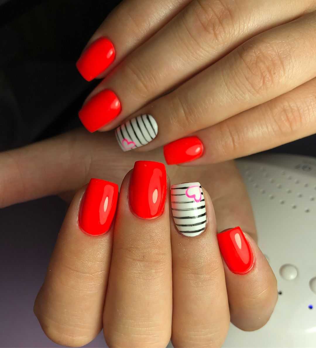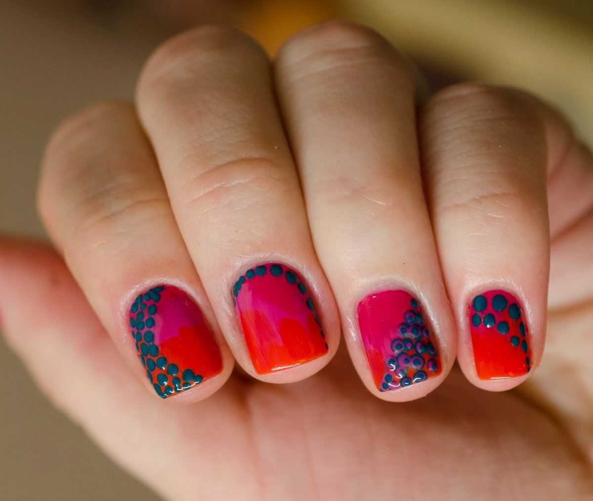 Необязательно ограничиваться однотонным покрытием. Можно создать полноценный нейл-арт, но придется учитывать, что короткие ногти лучше не перегружать деталями. Достаточно нескольких цветных блоков, лаконичных полосок или точек, чтобы сделать маникюр более интересным.