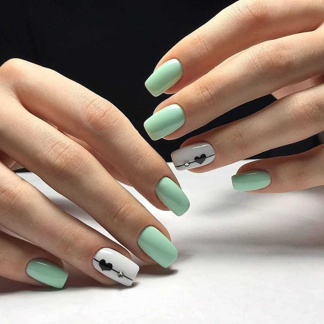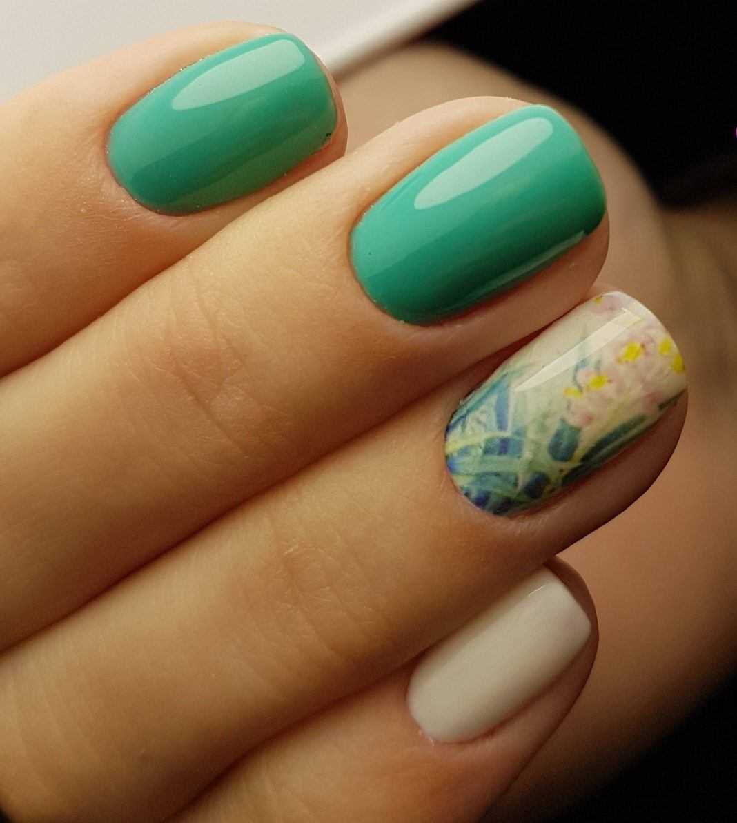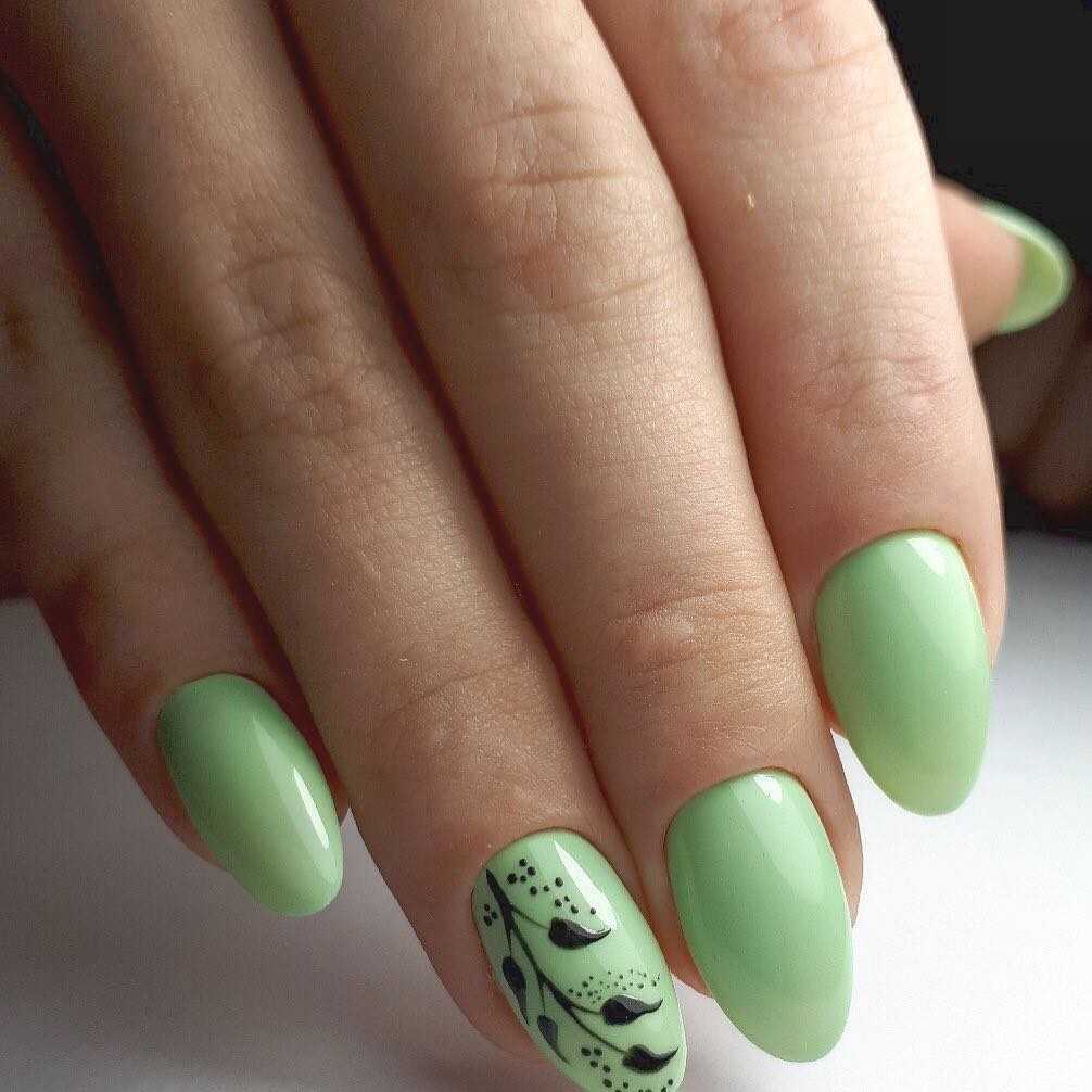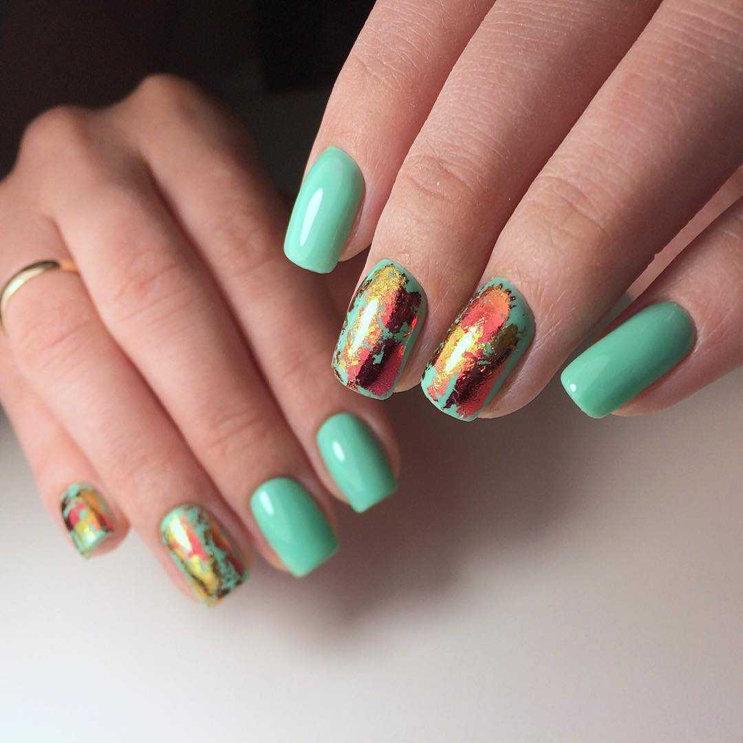 - Мятный. Нежный оттенок для весенне-летнего нейл-арта. Отлично смотрится на коротких ногтях.