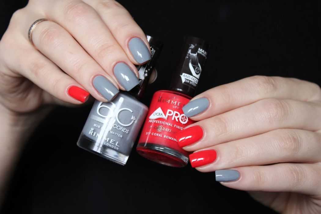 Серый тон выбирают не так часто, однако он отлично смотрится именно в качестве базы. Комбинировать его стоит с розовым, желтым, белым или синим. Несмотря на то, какие оттенки вы выберете, общий характер маникюра будет зависеть от их насыщенности. К примеру, выбирая пастельную цветовую гамму, вы получите милый, нежный дизайн.