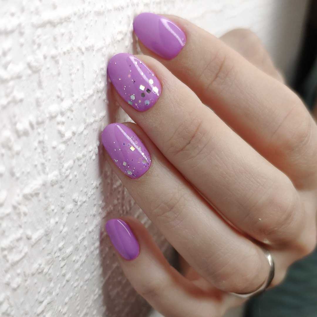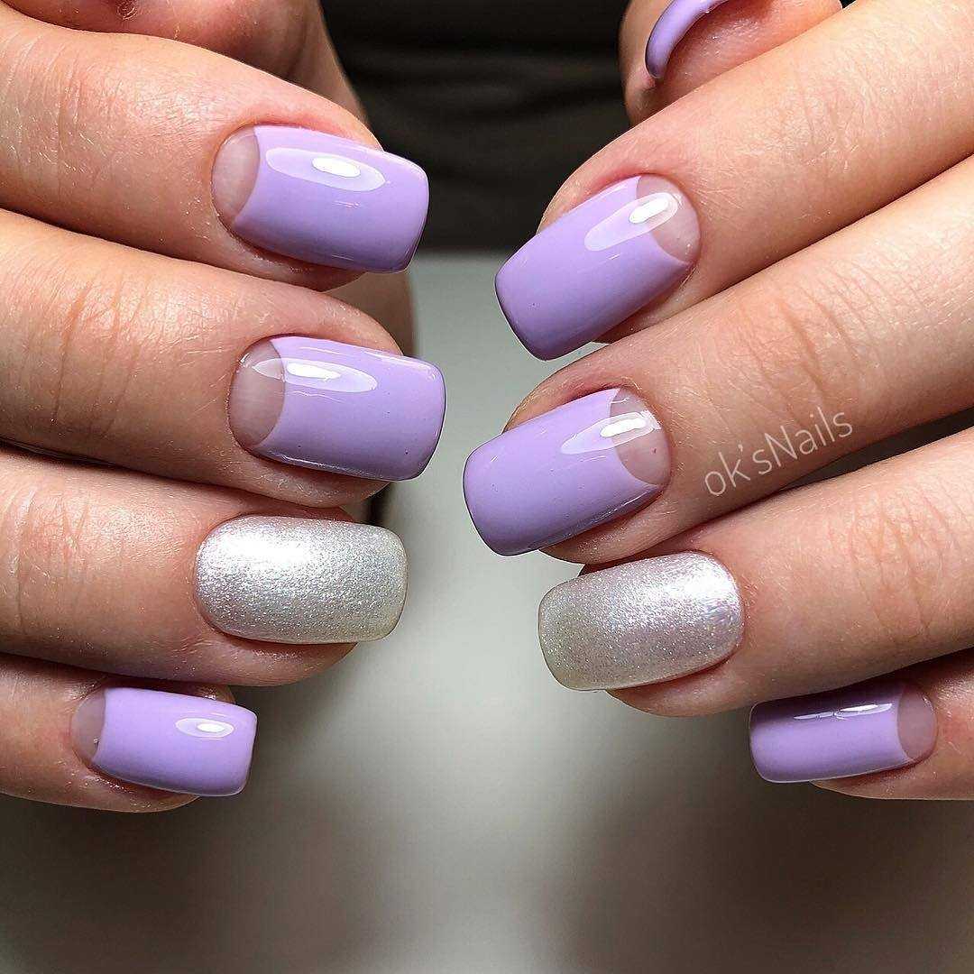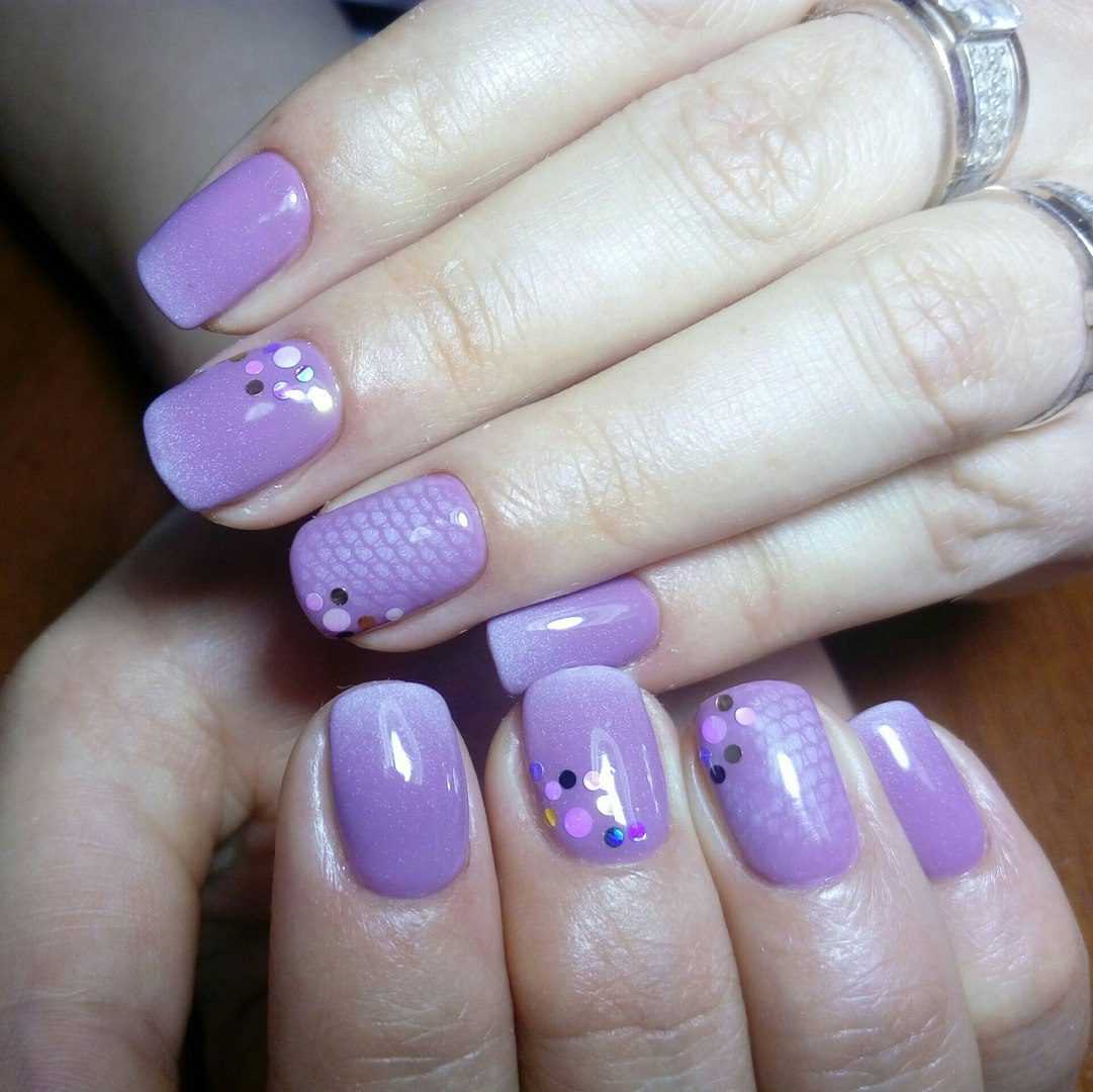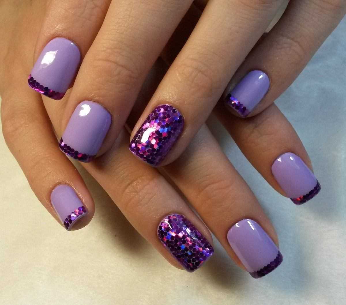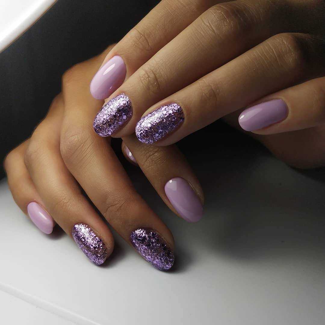 Что касается сиреневого покрытия, то девушки нередко выбирают именно его. Также пользуется популярностью вид градиента, который предполагает нанесение разного оттенка на каждый ноготок. Такой плавный переход смотрится невероятно красиво, особенно на коротких ноготках. А наличие блесток всегда будет уместным, но только в оптимальном количестве. Поэтому всегда предупреждайте мастера обо всех предпочтениях и тогда получите действительно прекрасный, современный маникюр.