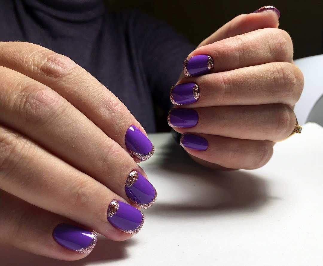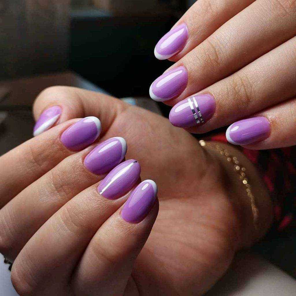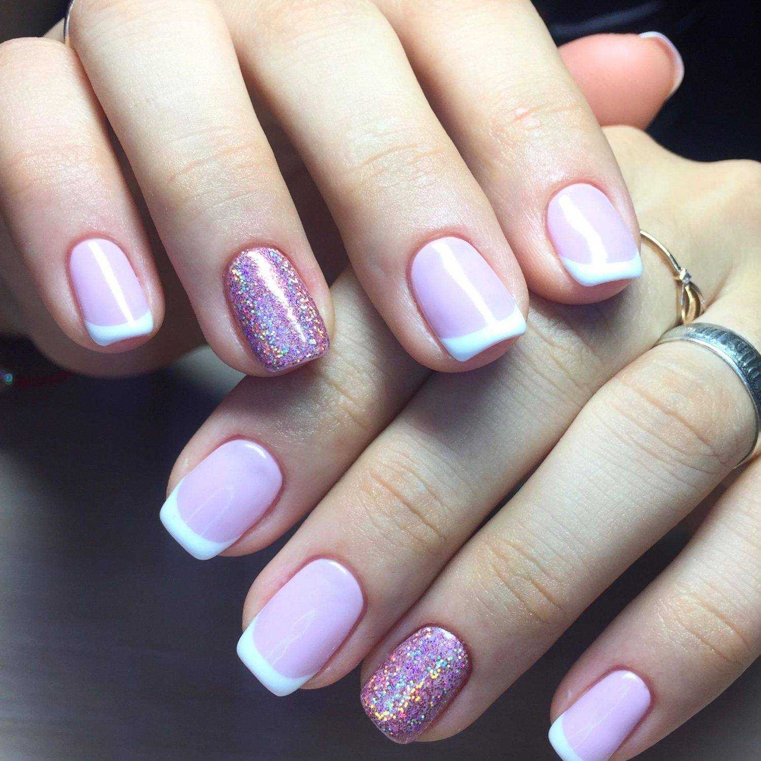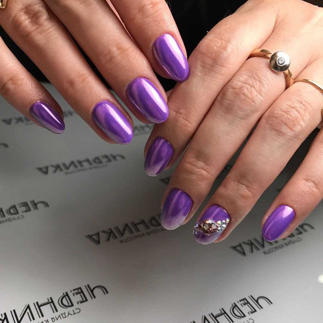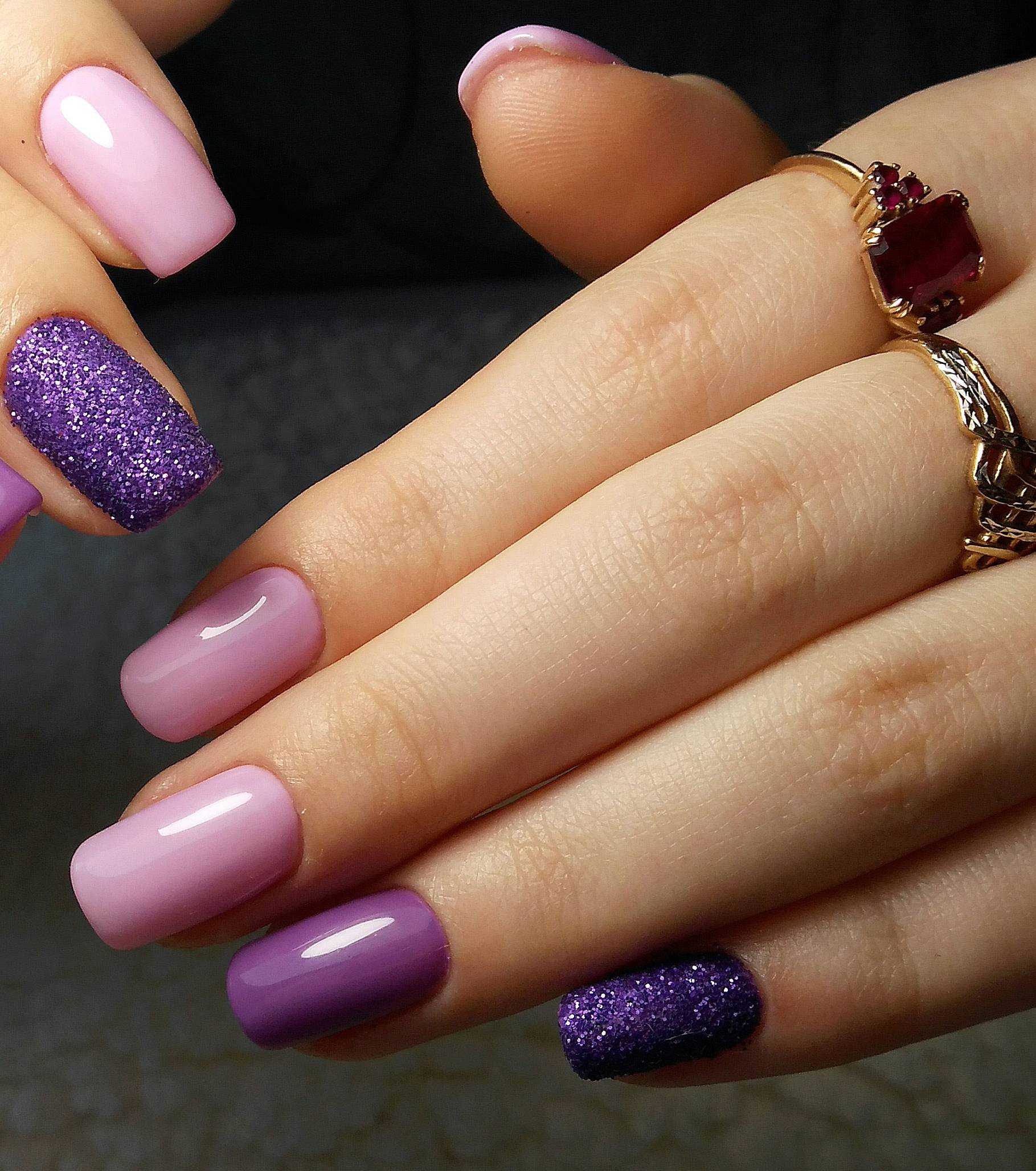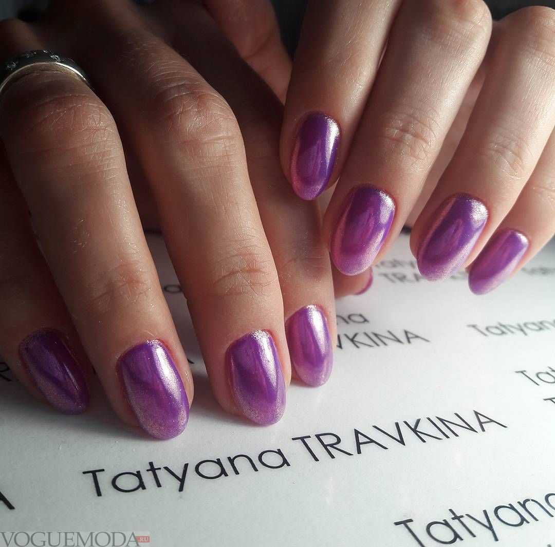 Что касается сиреневого покрытия, то девушки нередко выбирают именно его. Также пользуется популярностью вид градиента, который предполагает нанесение разного оттенка на каждый ноготок. Такой плавный переход смотрится невероятно красиво, особенно на коротких ноготках. А наличие блесток всегда будет уместным, но только в оптимальном количестве. Поэтому всегда предупреждайте мастера обо всех предпочтениях и тогда получите действительно прекрасный, современный маникюр.