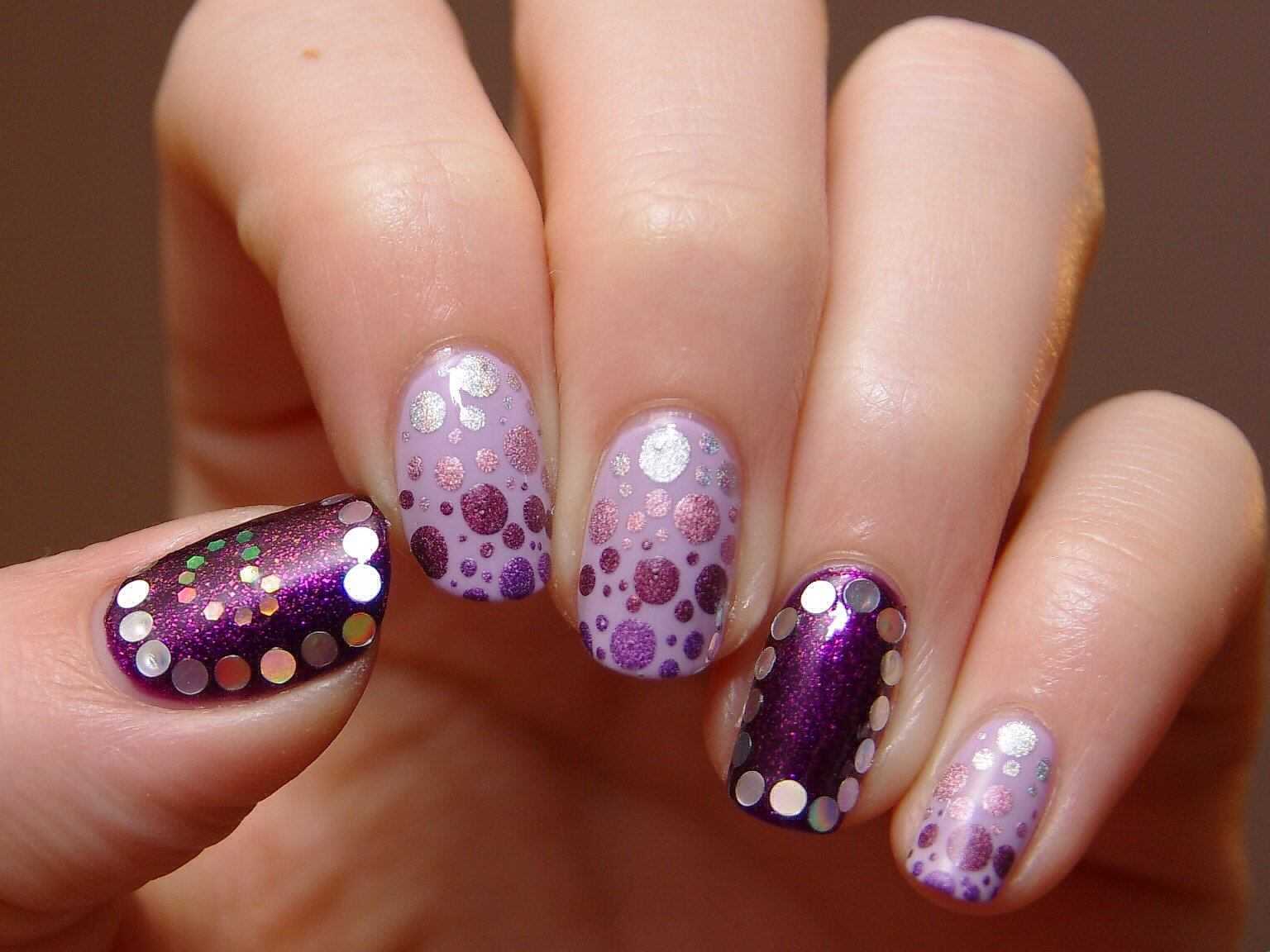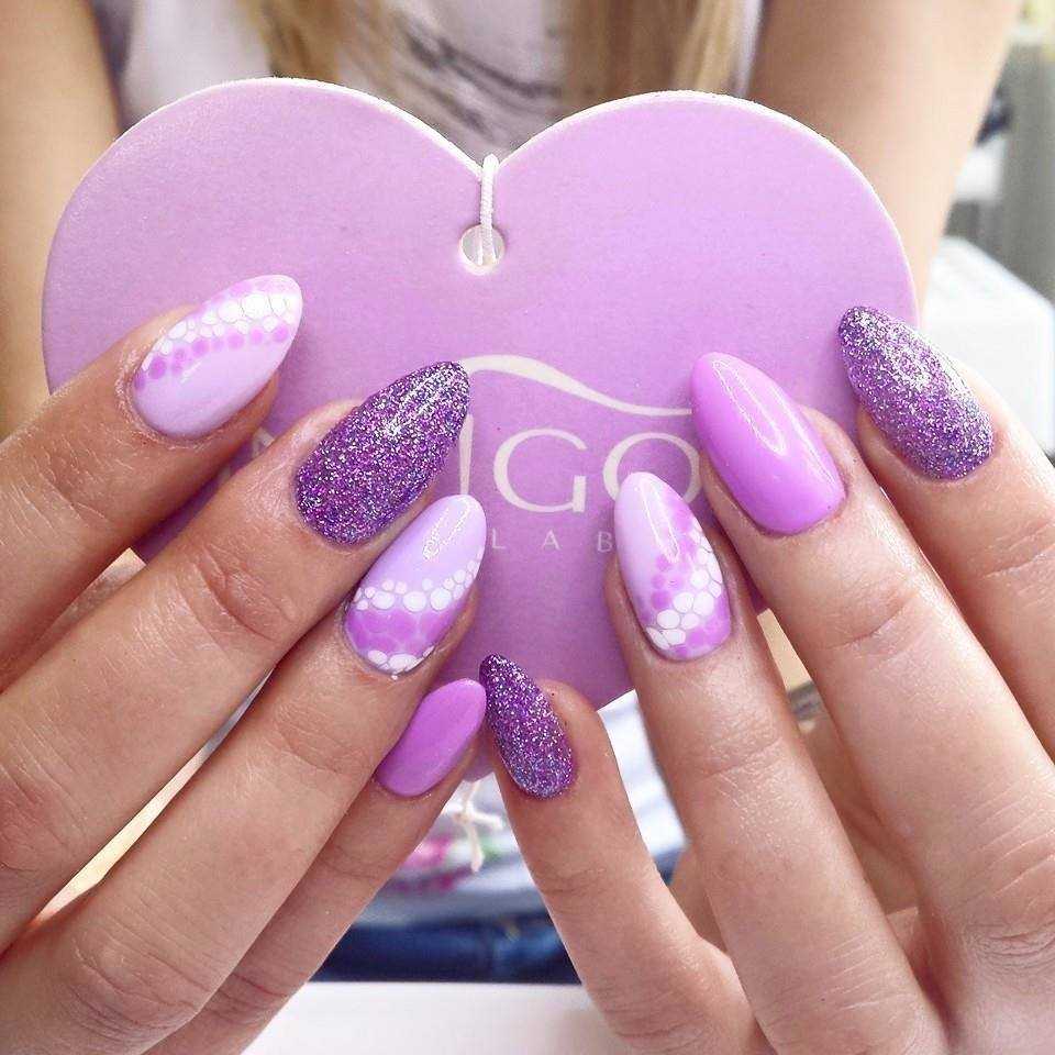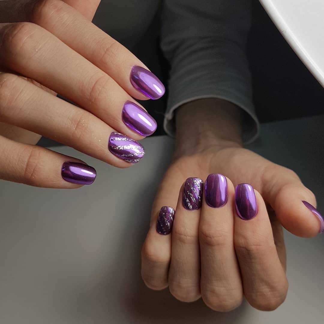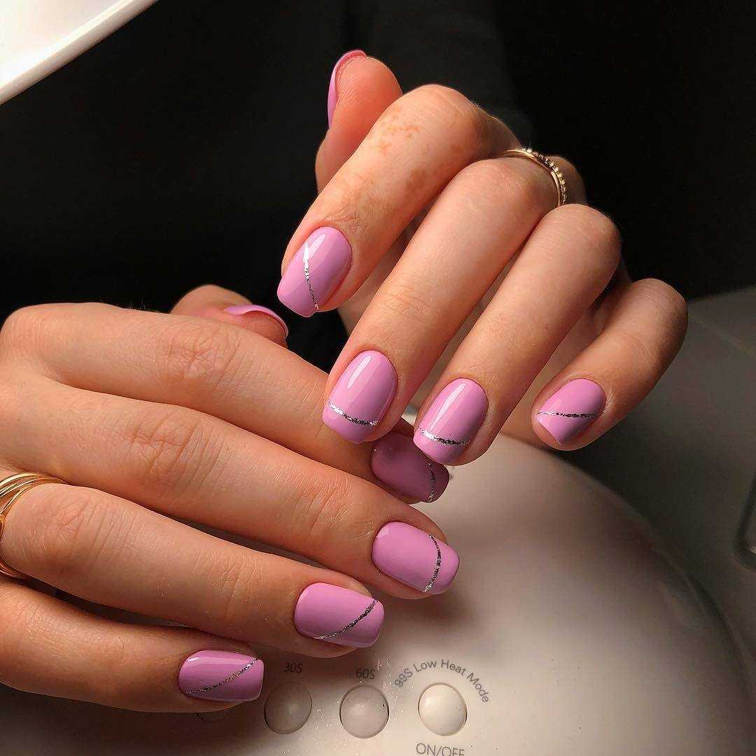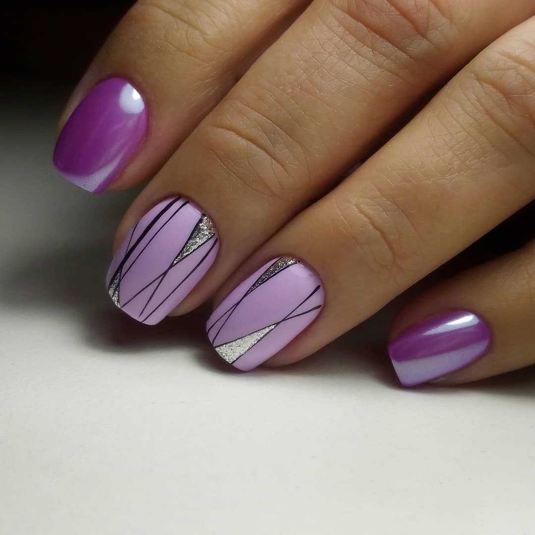 Что касается сиреневого покрытия, то девушки нередко выбирают именно его. Также пользуется популярностью вид градиента, который предполагает нанесение разного оттенка на каждый ноготок. Такой плавный переход смотрится невероятно красиво, особенно на коротких ноготках. А наличие блесток всегда будет уместным, но только в оптимальном количестве. Поэтому всегда предупреждайте мастера обо всех предпочтениях и тогда получите действительно прекрасный, современный маникюр.