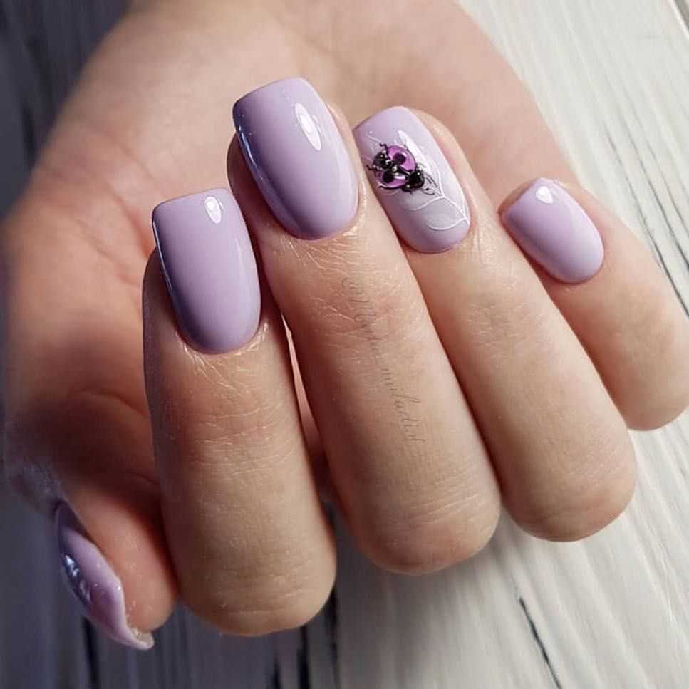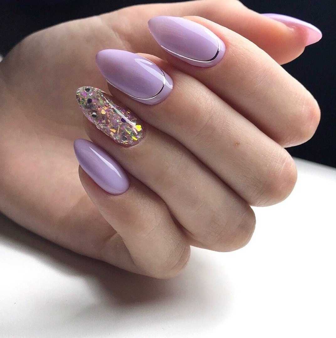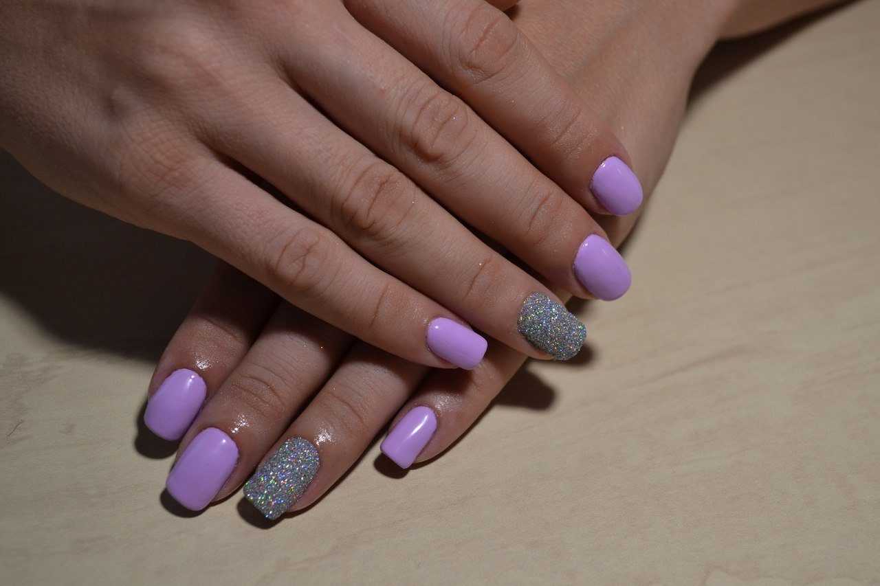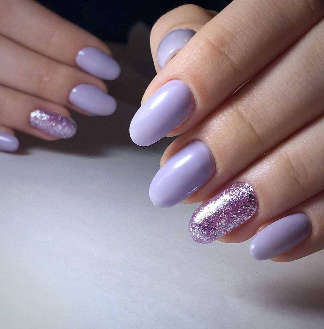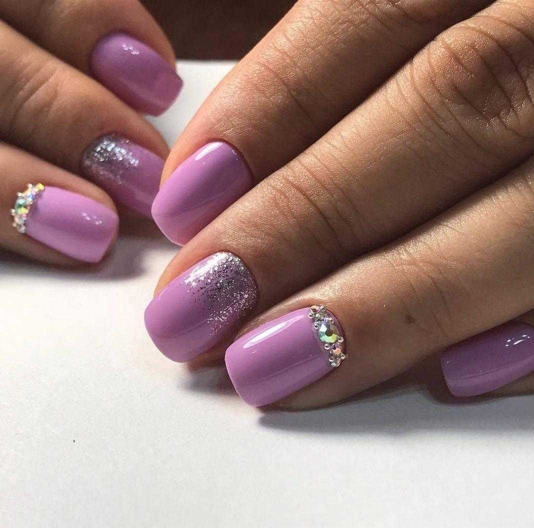 Сиреневый цвет – прекрасный выбор для современного, модного маникюра. Он отлично смотрится не только в виде однотонного покрытия, но и вместе с дизайном и россыпью блесток. Главное, чтобы всех деталей было в меру.