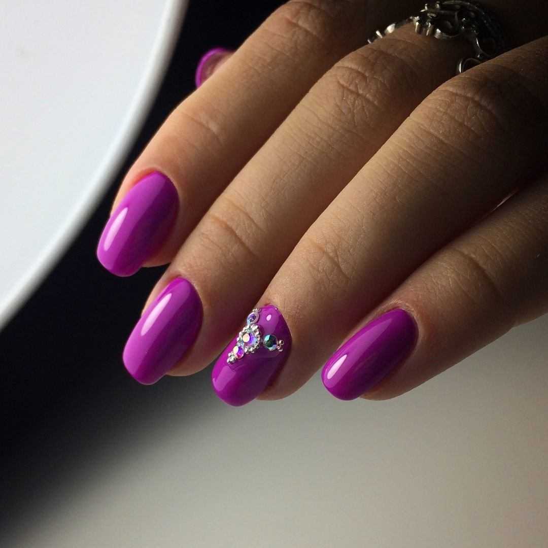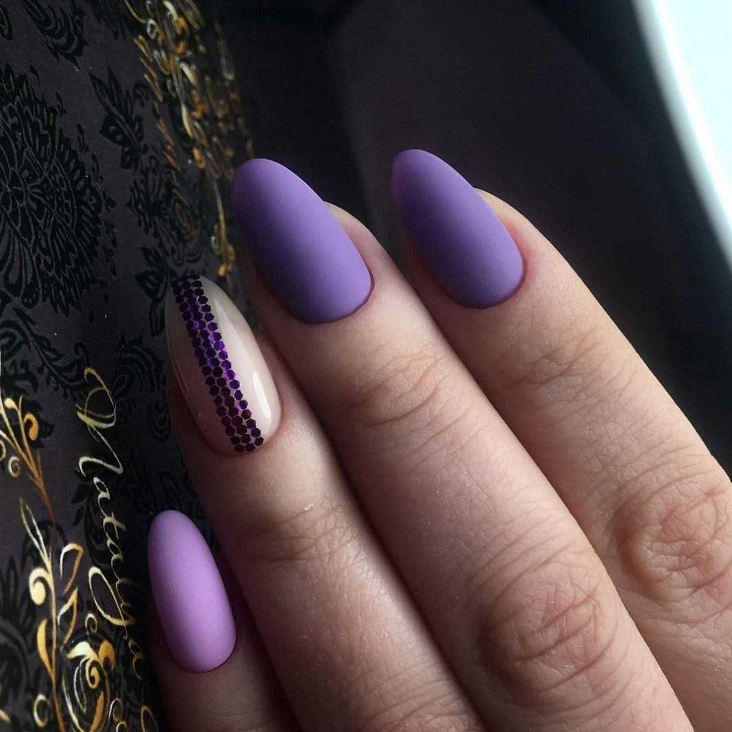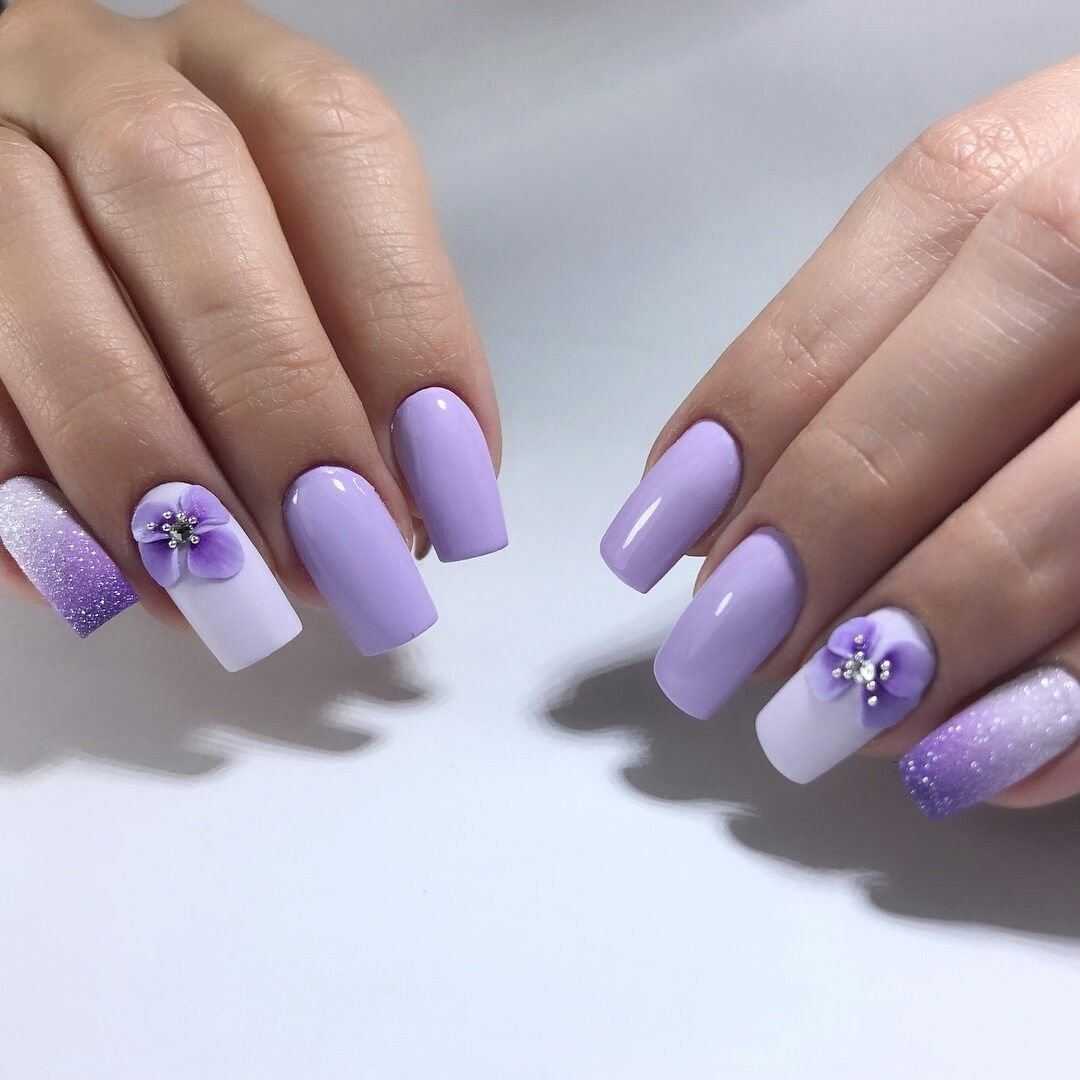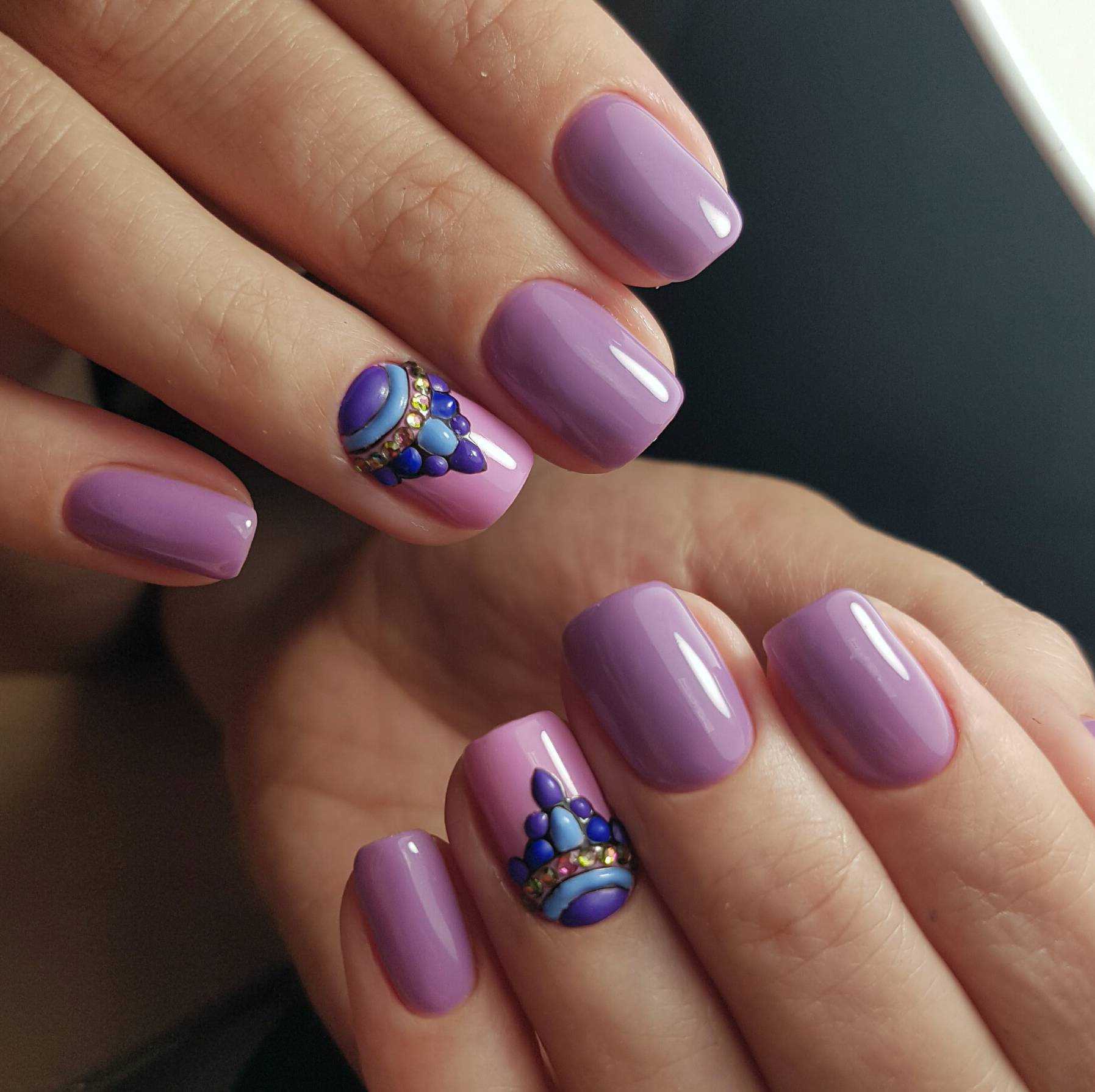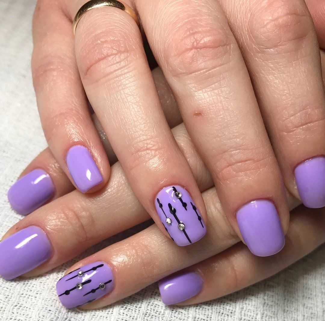 Сиреневый цвет – прекрасный выбор для современного, модного маникюра. Он отлично смотрится не только в виде однотонного покрытия, но и вместе с дизайном и россыпью блесток. Главное, чтобы всех деталей было в меру.